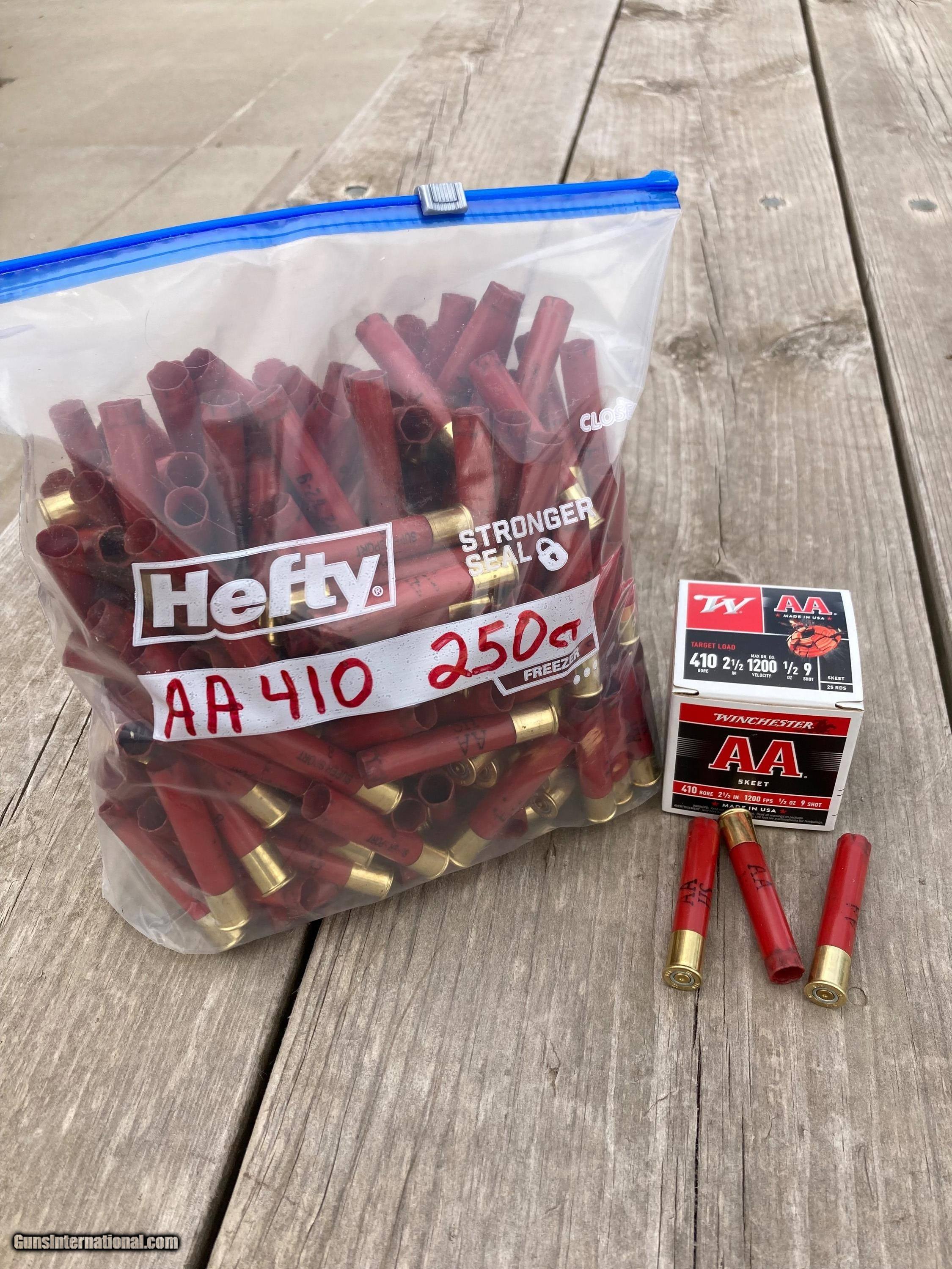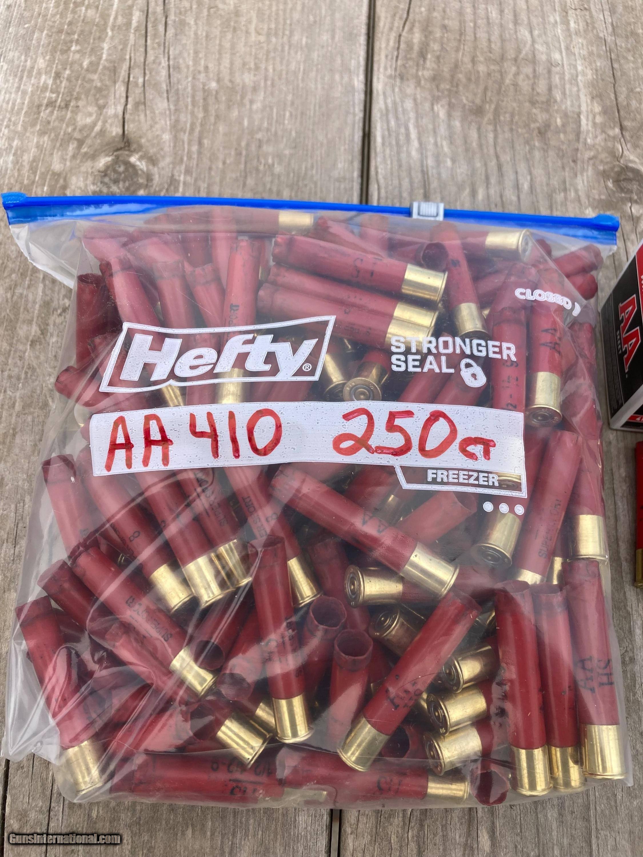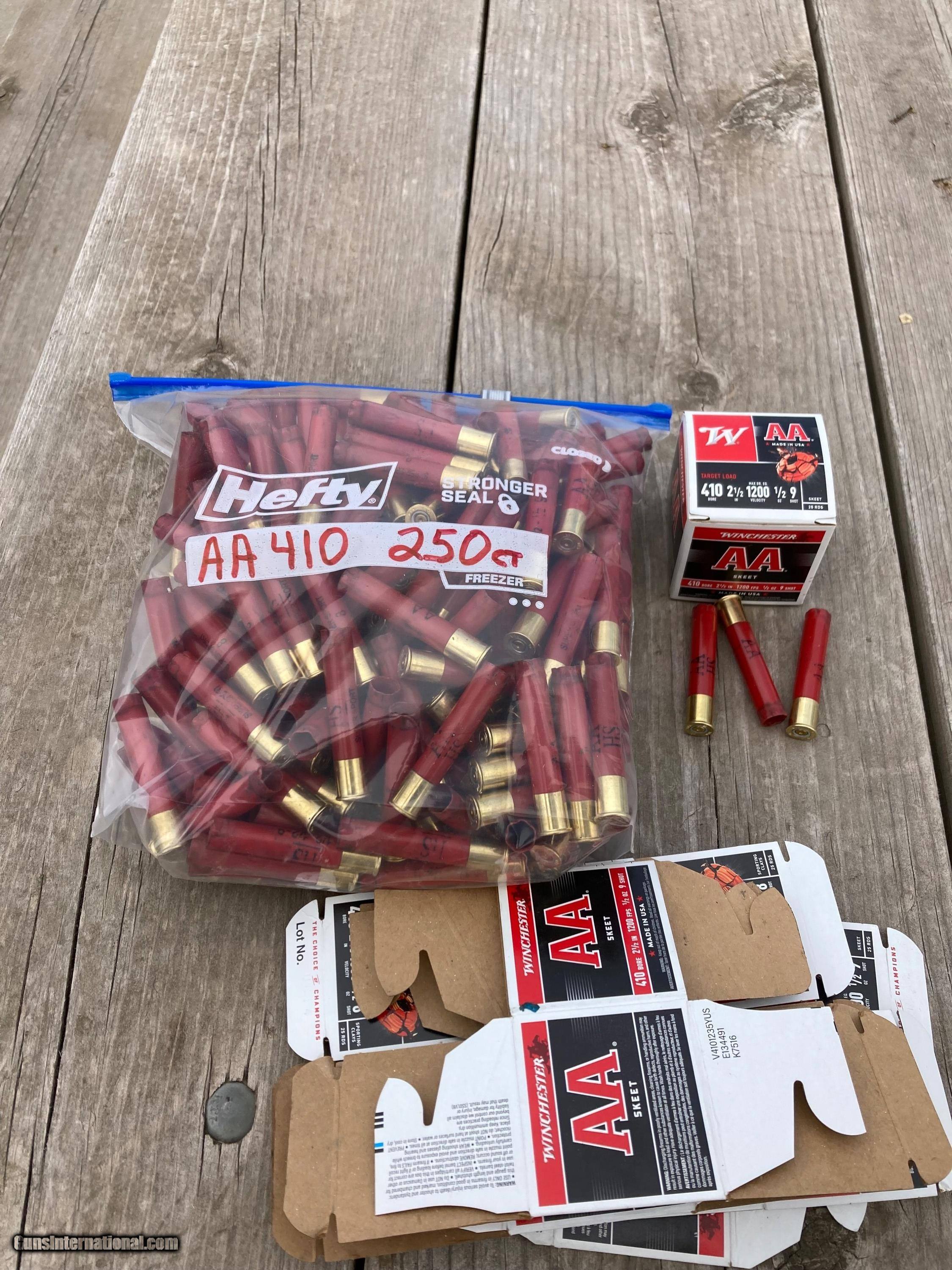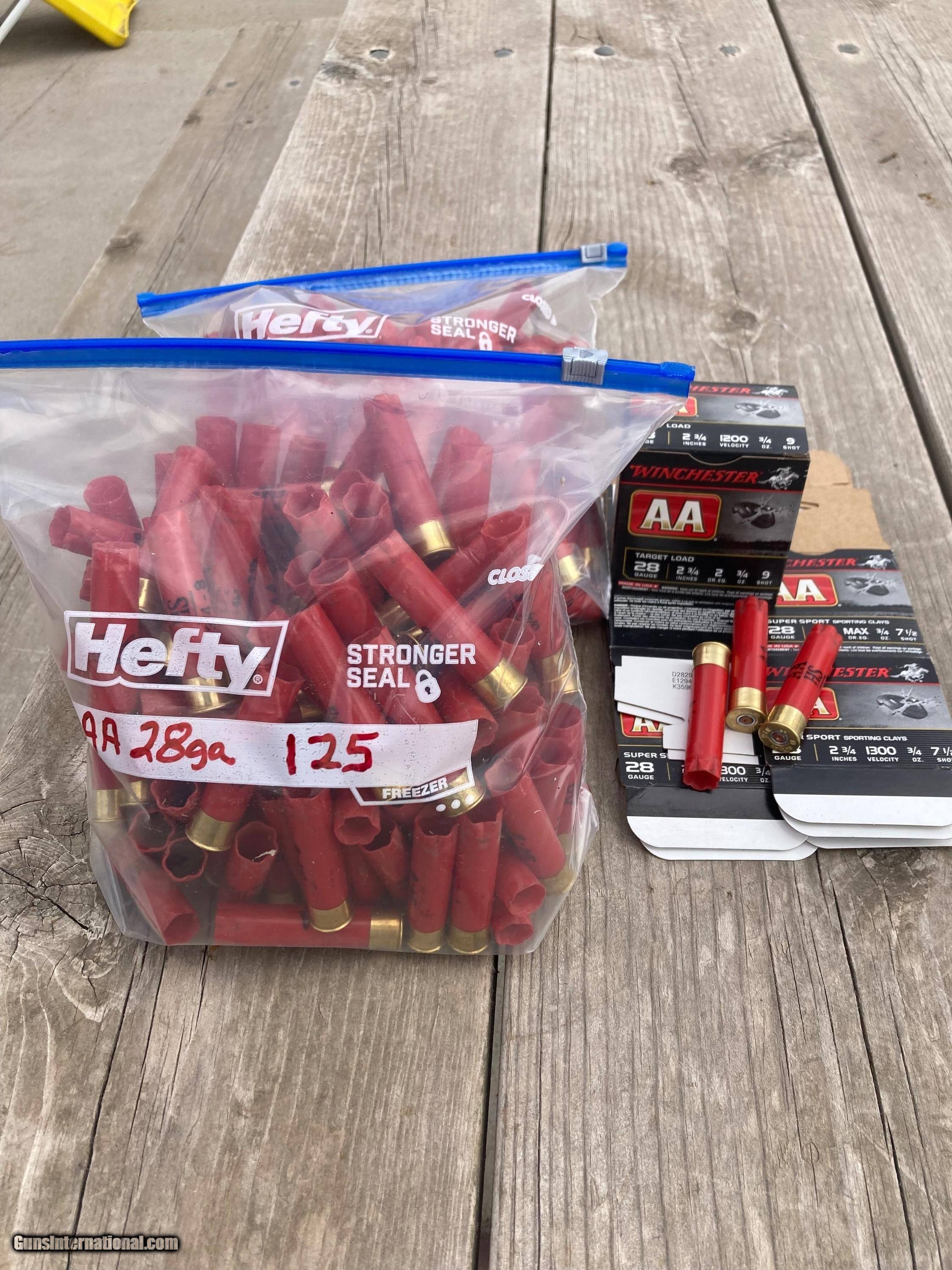 Description: 410 hulls (sold) 250 winchester AA once fired 28 gauge hulls with boxes. $90 SOLD Shotgun Gauge: 28 Gauge |