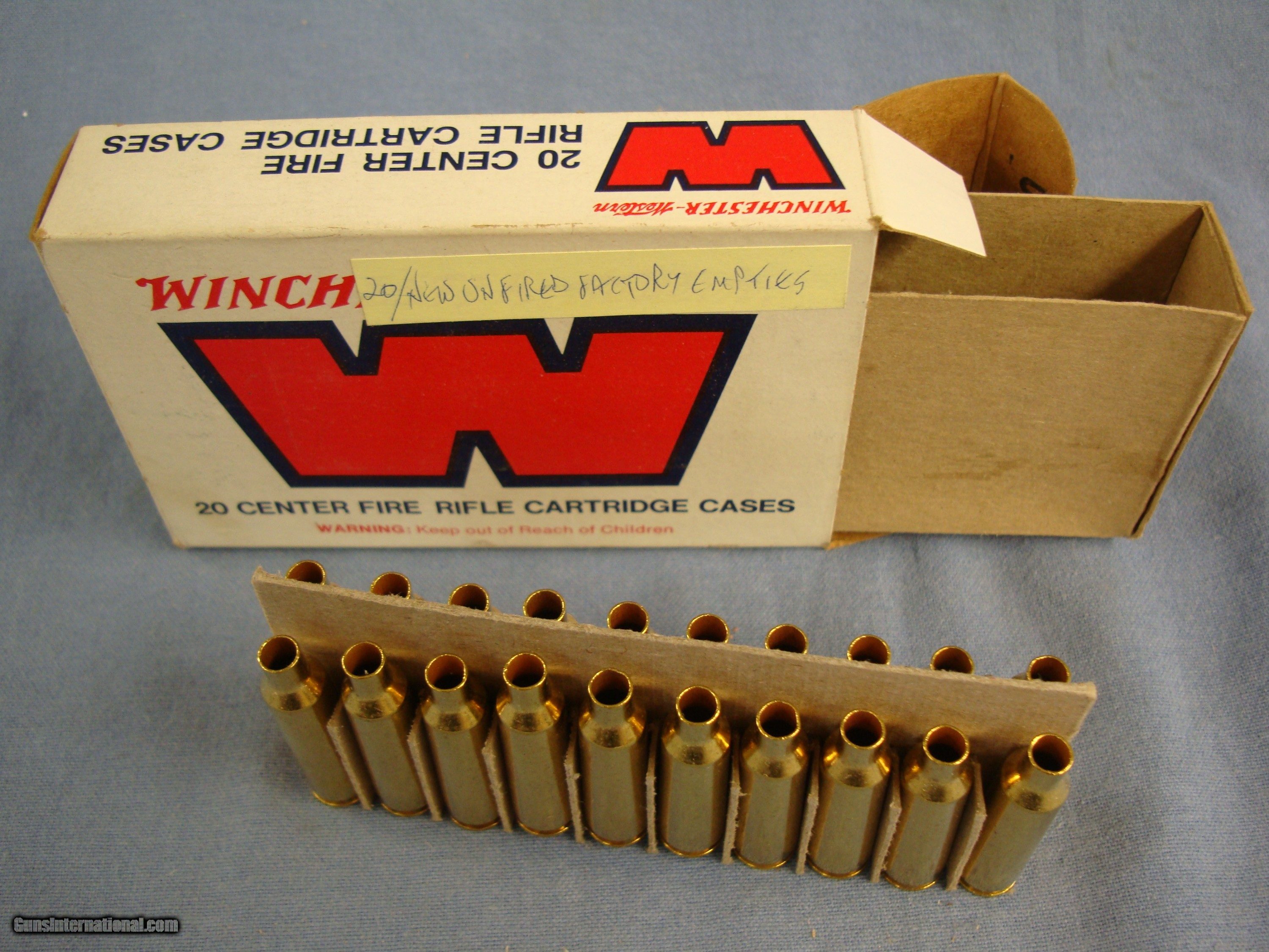 Description: 2 boxes of 20 brass cartridge cases each, in .22-250 Remington caliber. Winchester brand, new, unfired, in original factory boxes. A total of 40 pieces. Please ask questions before committing to buy as this is a no refund, no return, listing. Yellow tags on boxes are Post-It and will remove easily without damage to the box. Free shipping via USPS Priority Mail. Thanks for your interest. SOLD |