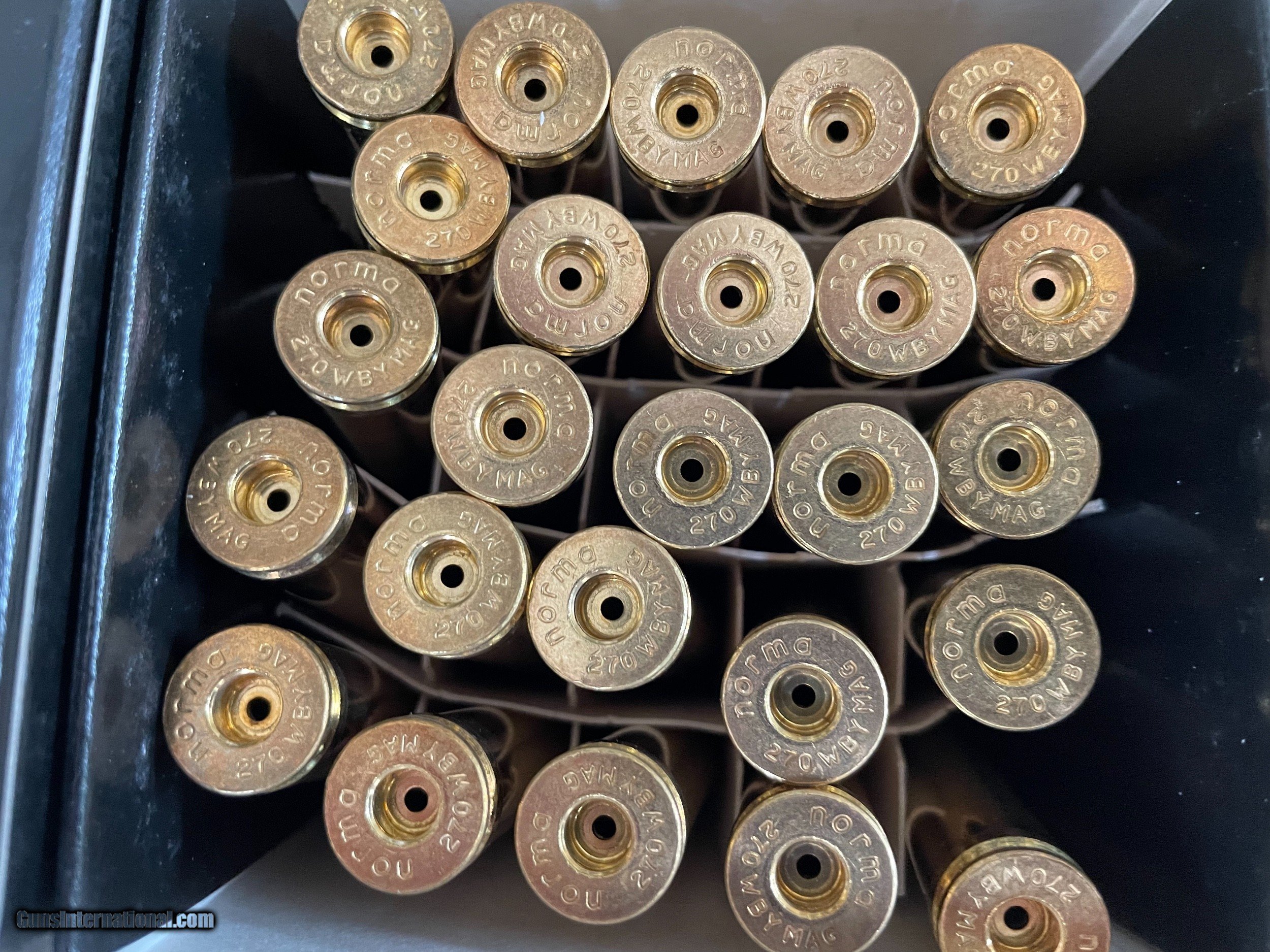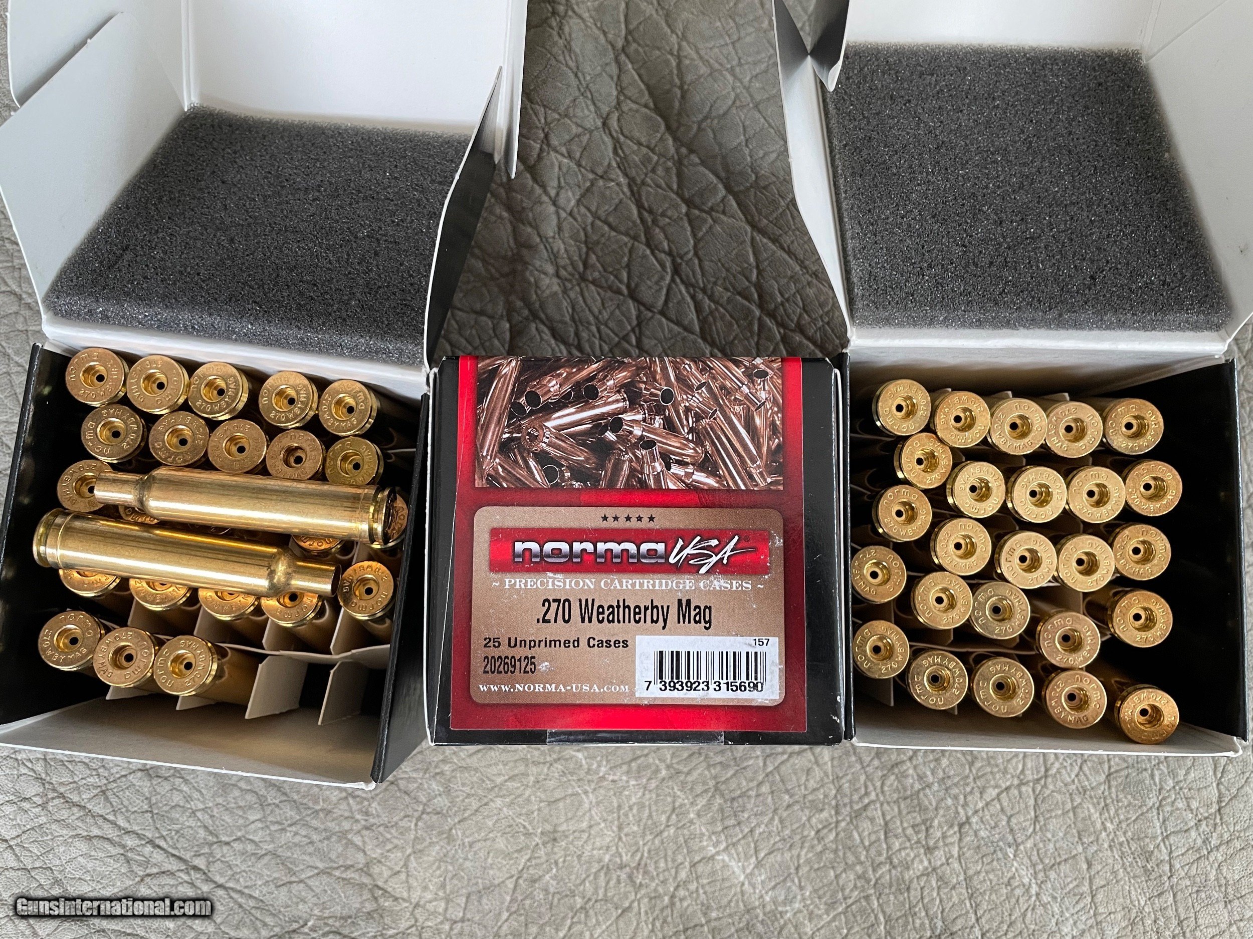 Description: . 270 WEATHERBY BRASS NORMA CURRENT PRODUCTION. 25 ROUND BOXES SOLD Rifle Caliber: .270 Weatherby Magnum |