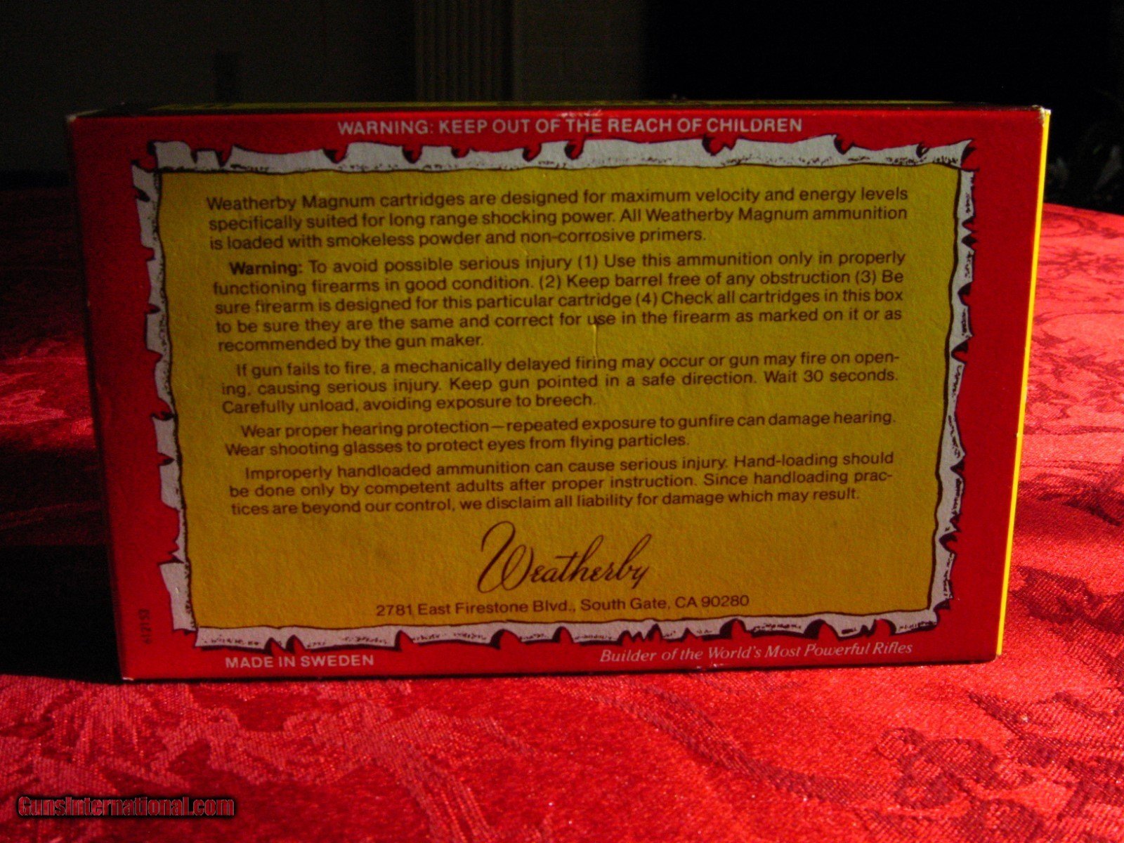 Description: This is 1 box of 20 pieces of new, unprimed brass packaged in an original box from years ago. Produced exclusively for Weatherby by Norma . Brass has CNC-machined primer pockets and is made to match-grade specifications. This is not loaded ammunition. Norma brass is the best I have ever used. I have reloaded Norma brass 18 times in my .460 Wby. with no signs of case weakening ( I can't say the same about my shoulder). Must be 21 or older. Cannot ship to Alaska or Hawaii, or any prohibited state. Shipping is $9.00 flat rate. SOLD Rifle Caliber: .460 Weatherby Magnum |