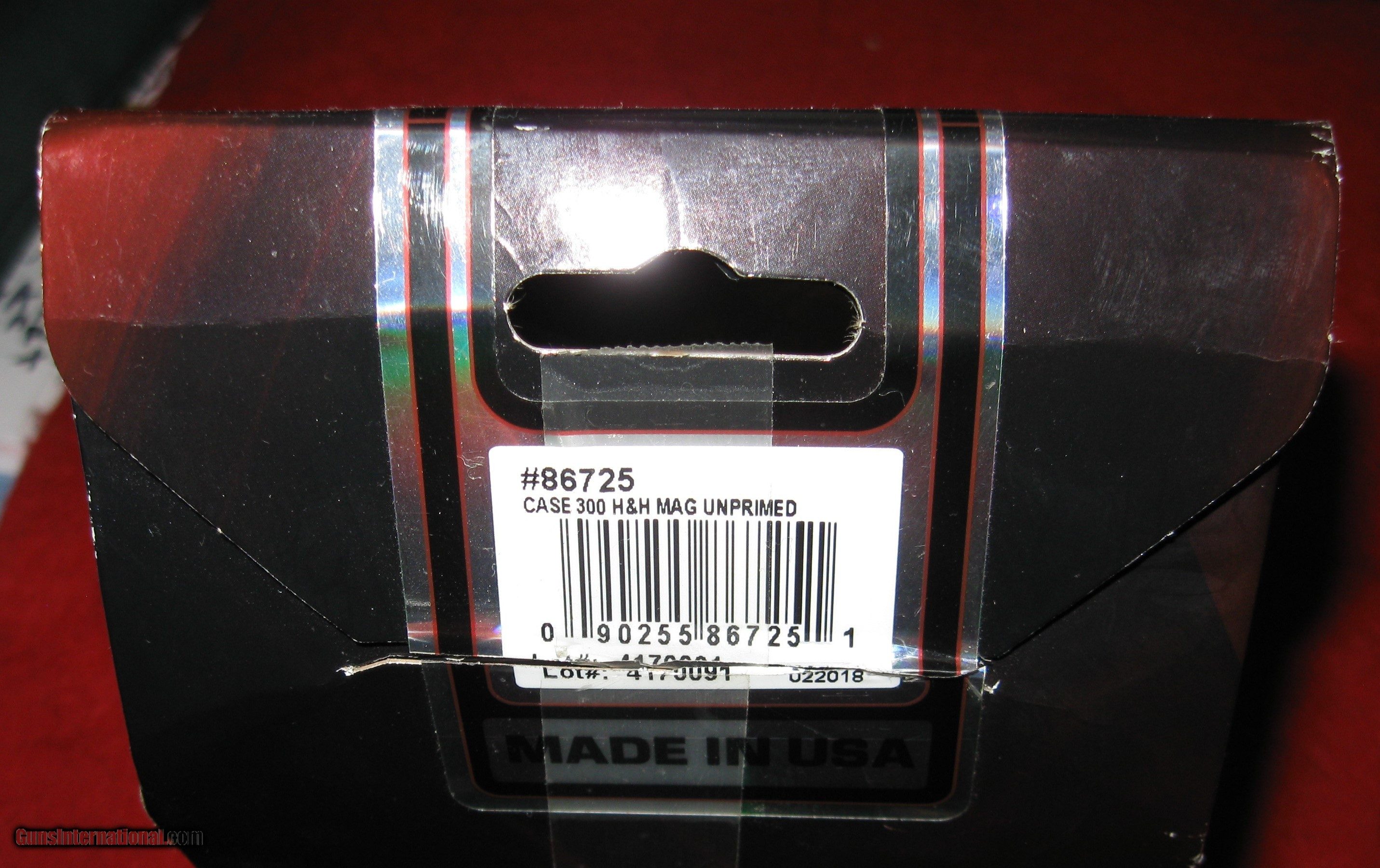 Description: sale pending - gerald l - 12-4-23 10 dqy hold - THIS BOX OF HORNADY NEW UNPRIMED 300 H&H BRASS HAS BEEN OPENED AND ONLY CONTAINS 30 CASES. SHIPPING IS $10.50 USPS PRIORITY DIRECT PACKED IN THE PLASTIC BAG SMALL FLAT RATE OR $15.85 MEDIUM FLATRATE IF YOU WANT THE HORNADY CARTON SHIPPED INTACT SOLD Rifle Caliber: .300 H&H Magnum |