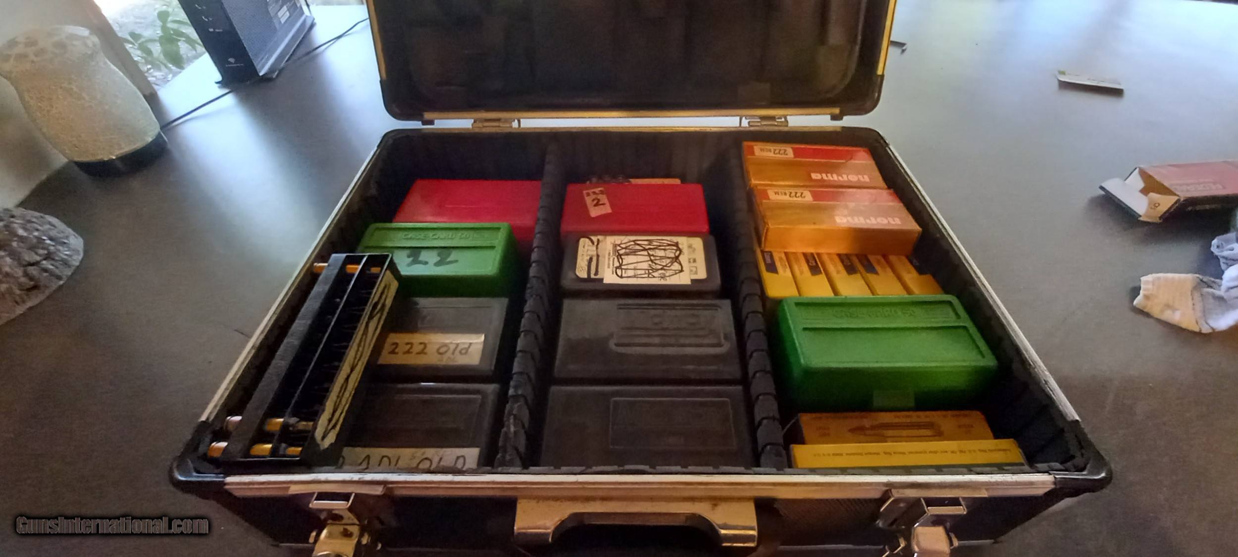 Description: Please add $30 for shipping. Case included at n/c Cartridges Unprimed 63 ea RP 45 ea FC 150 ea Win Super 10 ea Peters 15 ea UMC 6 ea Lapua 38 ea Norma Unprimed New In Box 40 ea Norma 100 ea Win Super Primed 50 ea Win Super 8 ea RP 2 ea UMC Primed New in Box 40 ea Win Super Ammo 24 ea RP SOLD Rifle Caliber: .222 Remington |