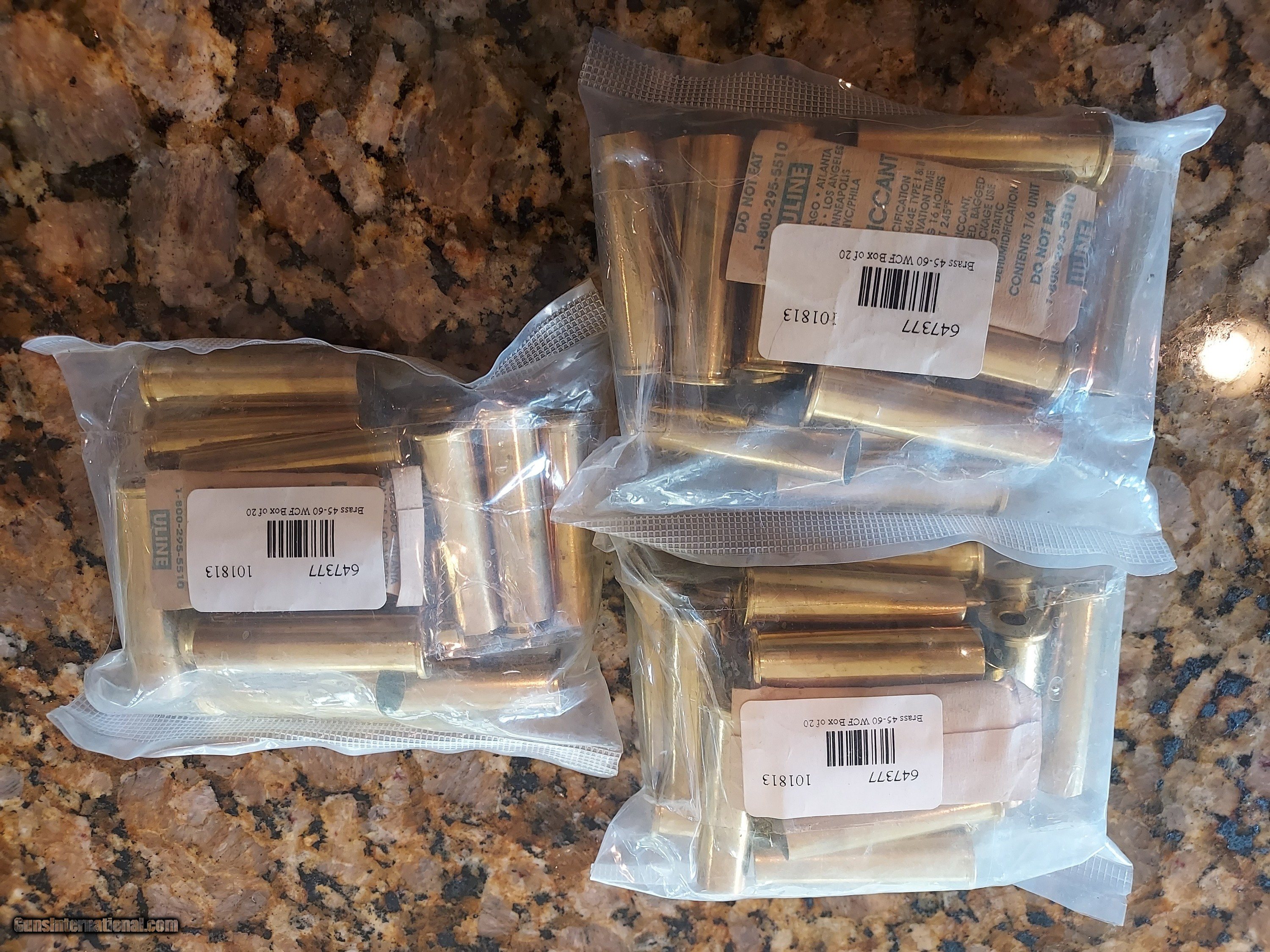 Description: This is new in the packages deprimed 45-60 brass. The current retail price of this brass is $51.25 per 20 pieces. Will sell at a lot price for 60 pieces at $125 delivered. SOLD |