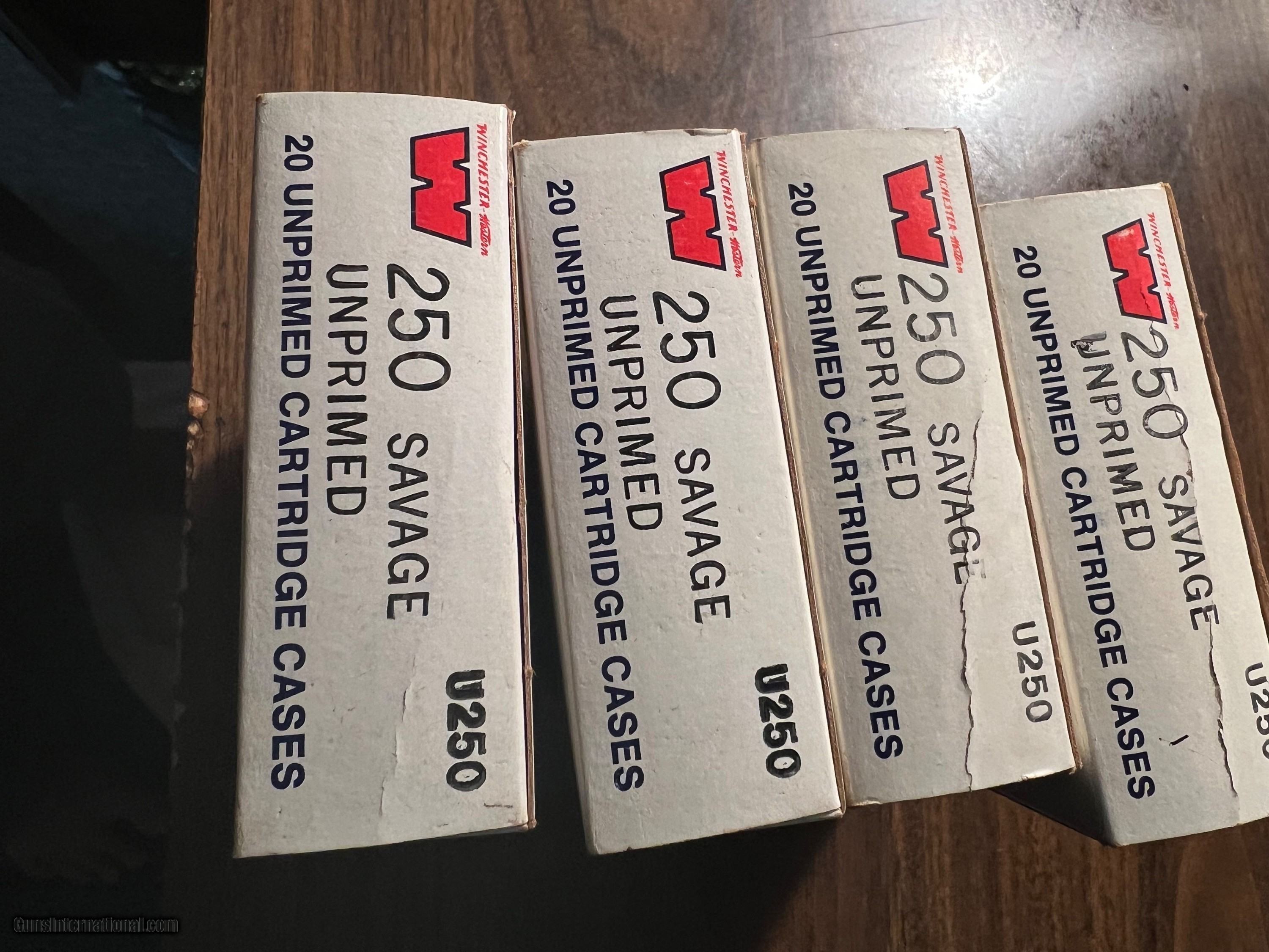 Description: WINCHESTER. 250. Savage. New Unprimed. Brass. 4 boxes. 80. New. Brass. Total. Shipping. 10.00. Cashiers. Check. or. USPS. Money order. No sales. Were. PROHIBITED. No sales to CA SOLD |