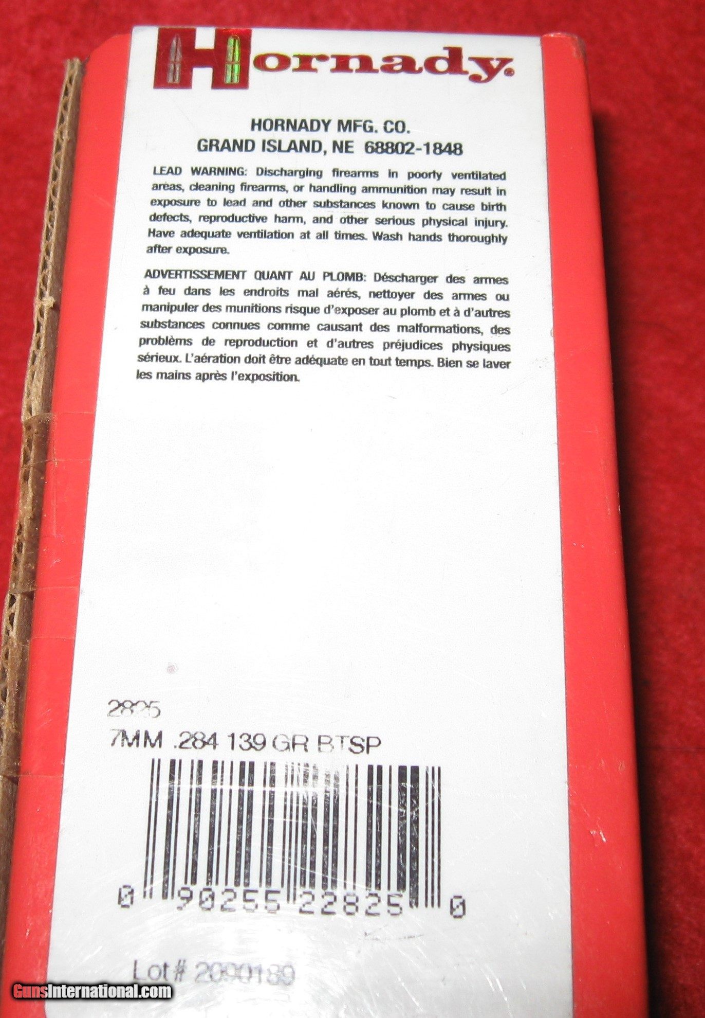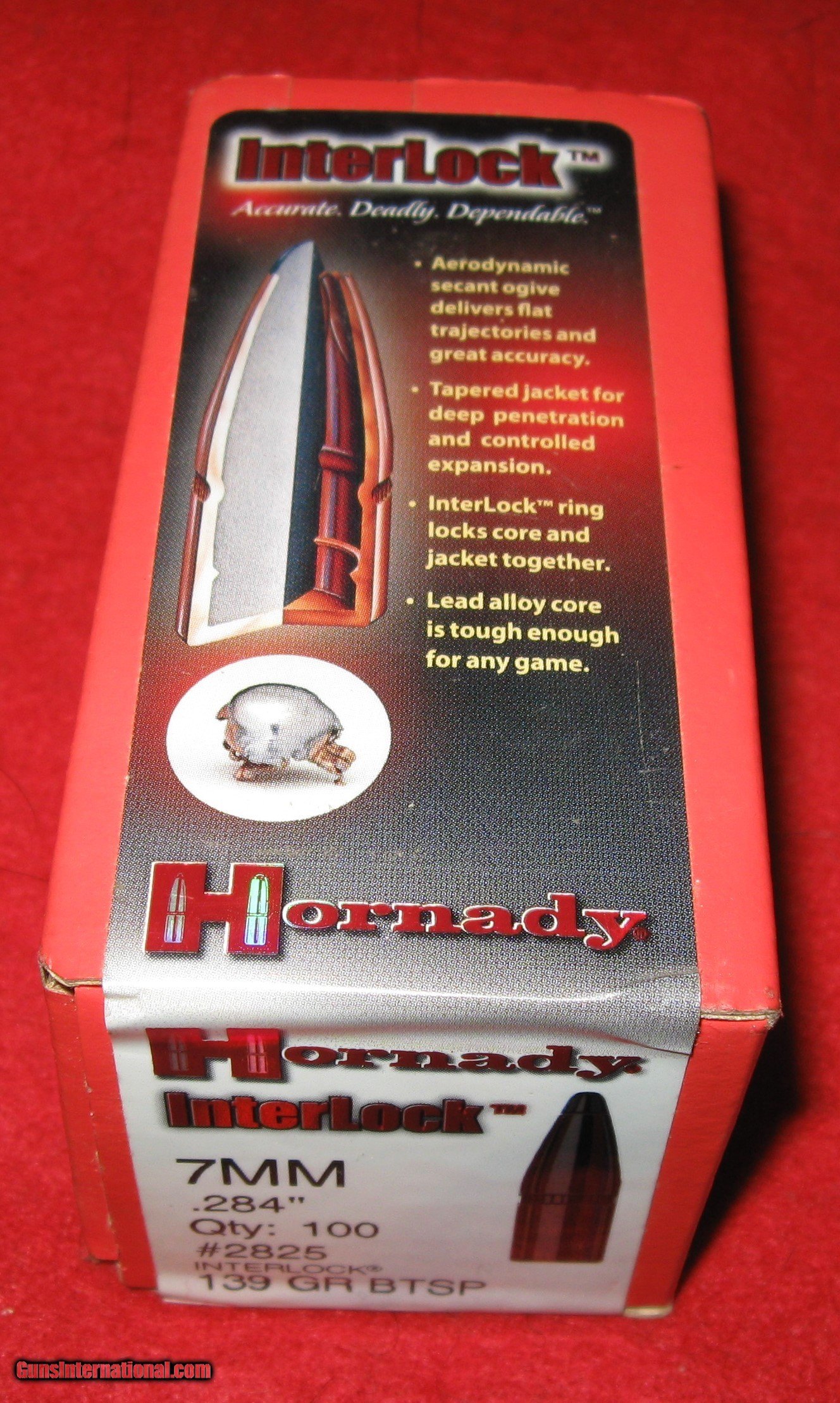 Description: sale pending al g-THIS BOX OF 100 HORNADY #2825 7MM RELOADING BULLETS IS UNOPENED. THEY ARE .284" DIAMETER 139 GRAIN BOAT TAIL SOFT POINT INTERLOCKS. SHIPPING IS ACTUAL COST NO HANDLING FEES. SOLD |