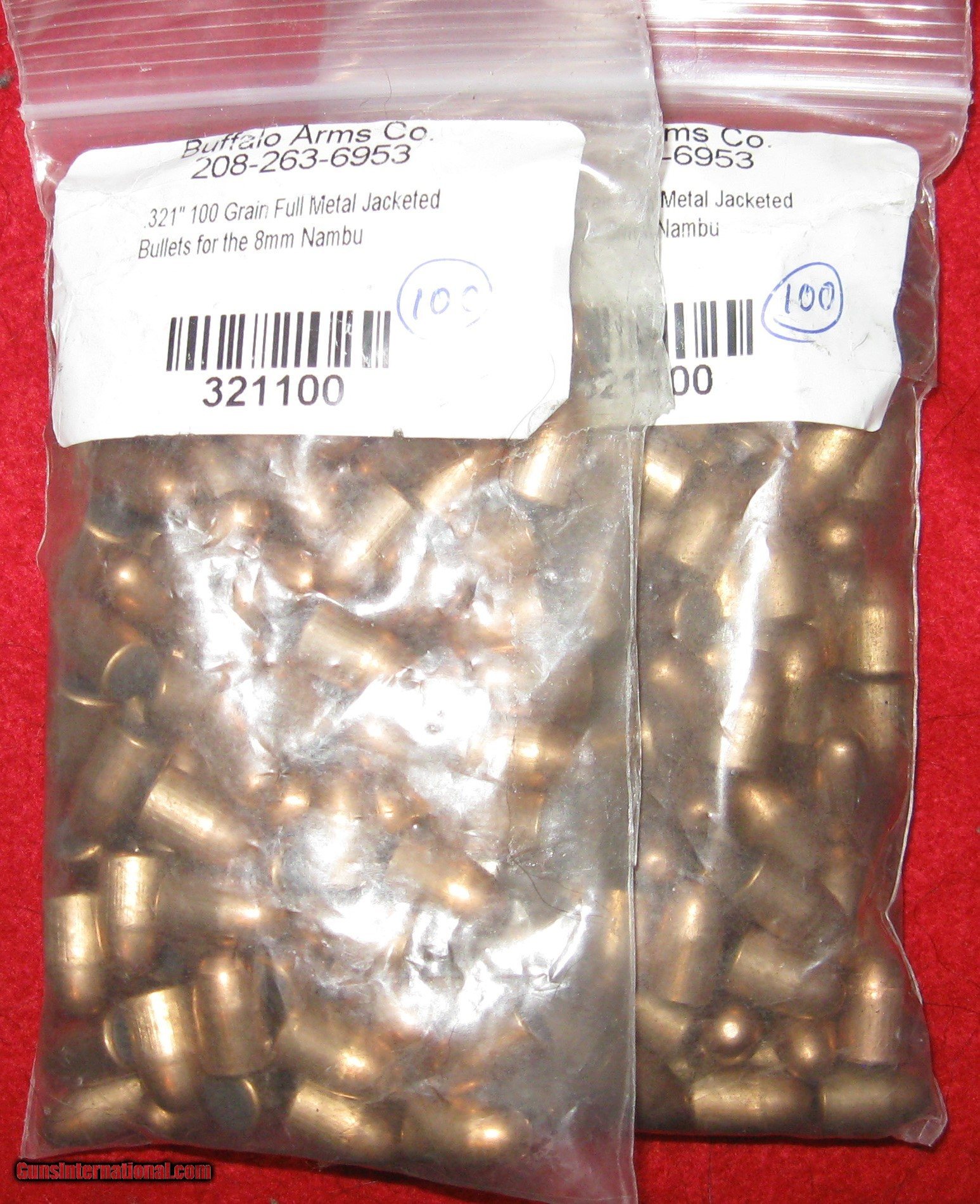 200 BUFFALO ARMS .321 DIAMETER 100 GRAIN FMJ 8MM NAMBU BULLETS