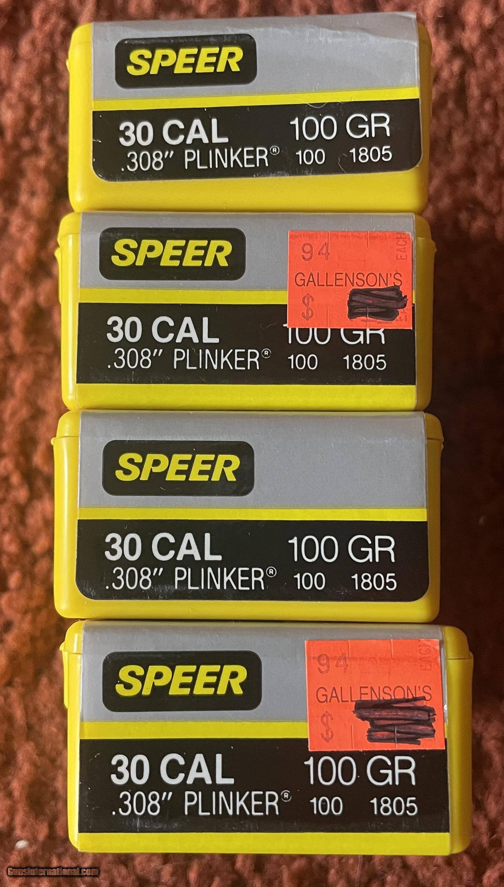 4 boxes of Speer 30 cal. 100 grain 308 Plunker bullets total count 400