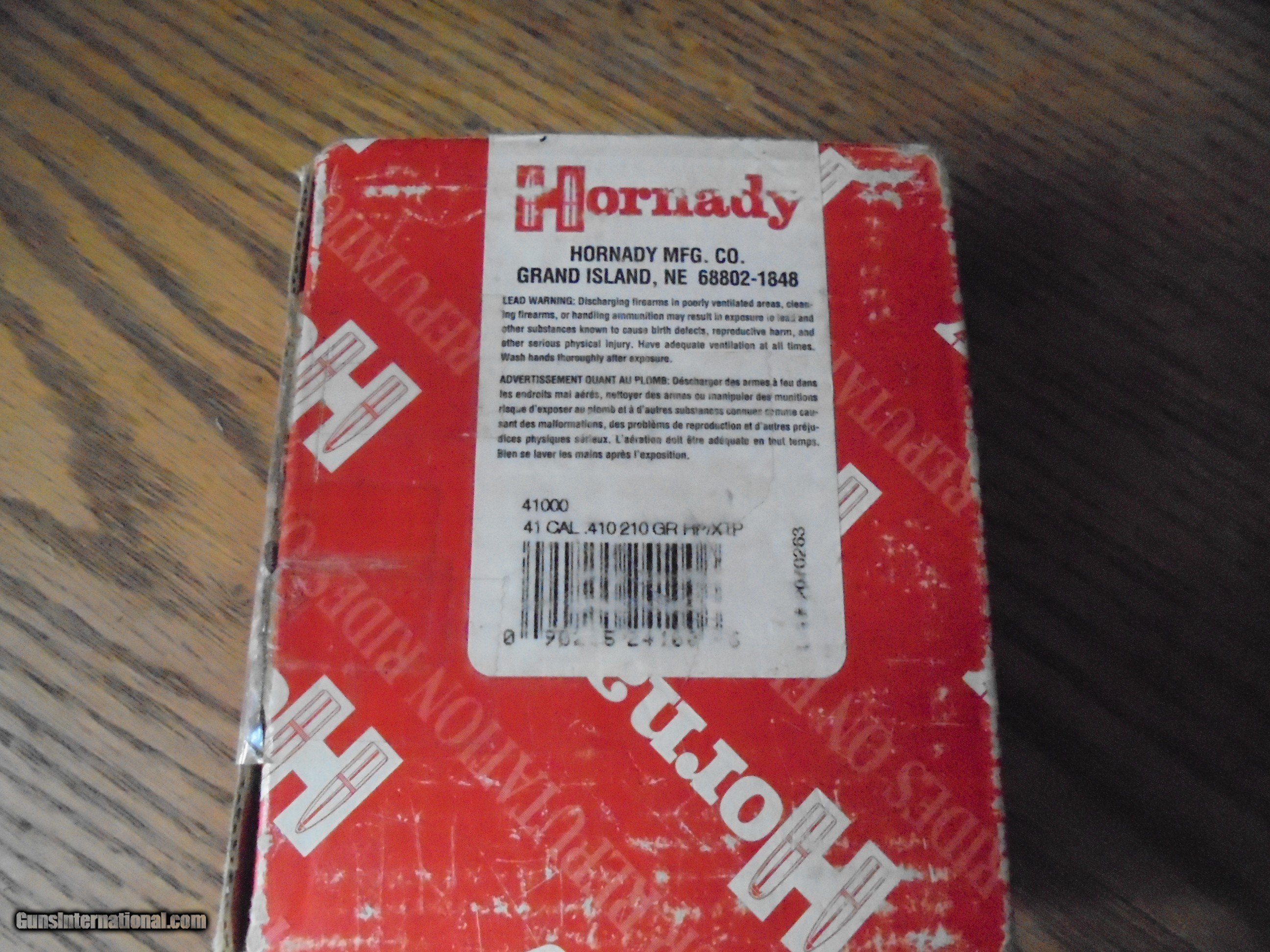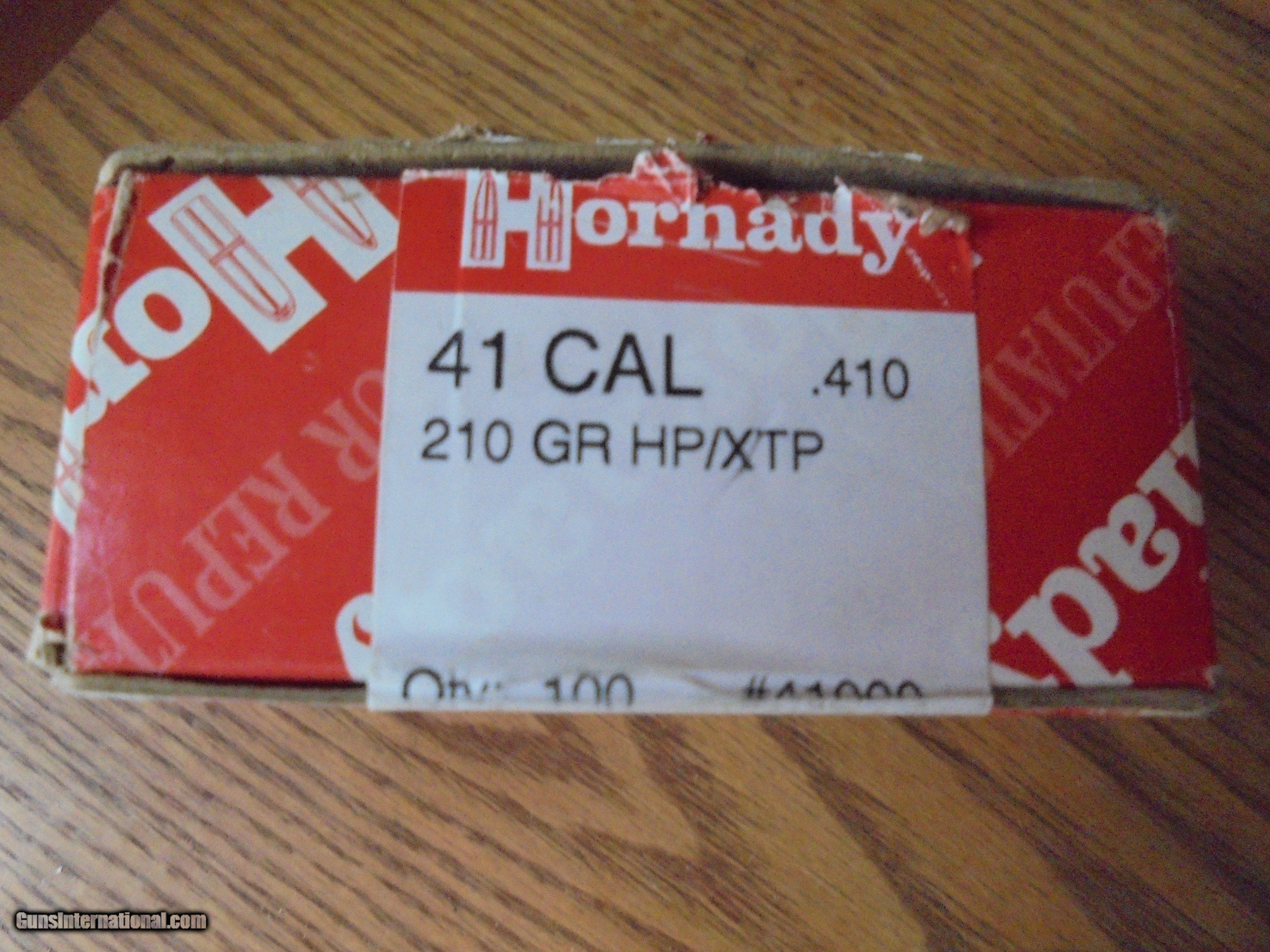 Description: Hornaday 41 caliber bullets - 210 grain - HP/XTP - 100 count - factory sealed box. $40 plus $10 shipping SOLD |