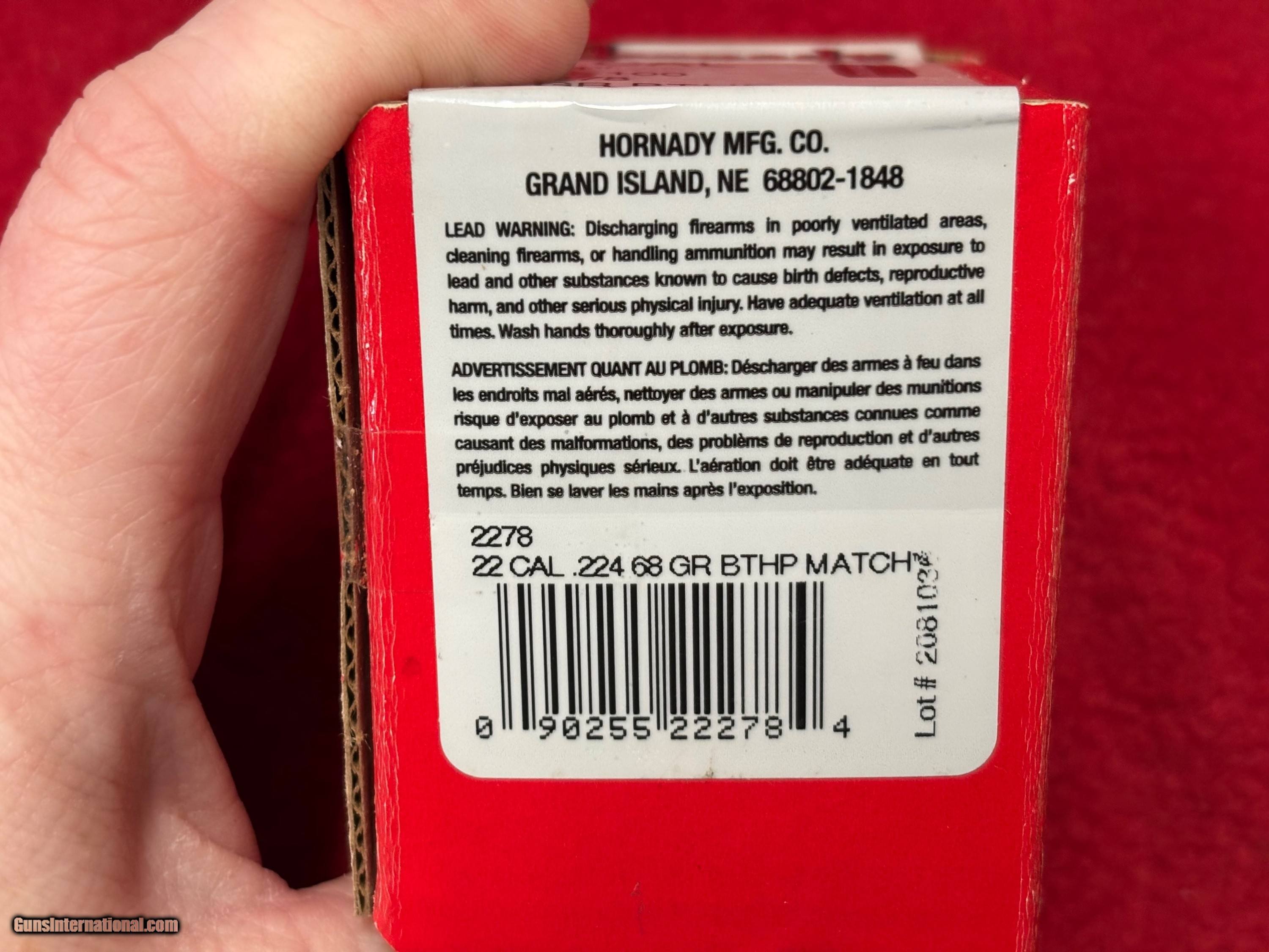Description: Hornady Match .22 Cal 68 GR BTHP Bullets #2278 10 boxes..…100 bullets in each box 1,000 bullets total $149.00 $16.00 to ship If you are WEST of the Mississippi shipping will be $10.00 extra Thank you for looking at our items. If it is listed on the site and not marked "Sale Pending" or "Sold ", we still have it in the shop. If you wish to buy, hit buy it now and call the shop to pay. We are open Monday thru Friday 10:00am-3:00pm EST ...........Ask for Bree....... (803) 874-1060. Please CALL the shop first if you are in California. You need to verify you can have this weapon, since we DO NOT accept returns from California. THERE IS A 3.5% CARD FEE. NO INTERNATIONAL SALES Price: $149.00 Buy Now Contact Seller |