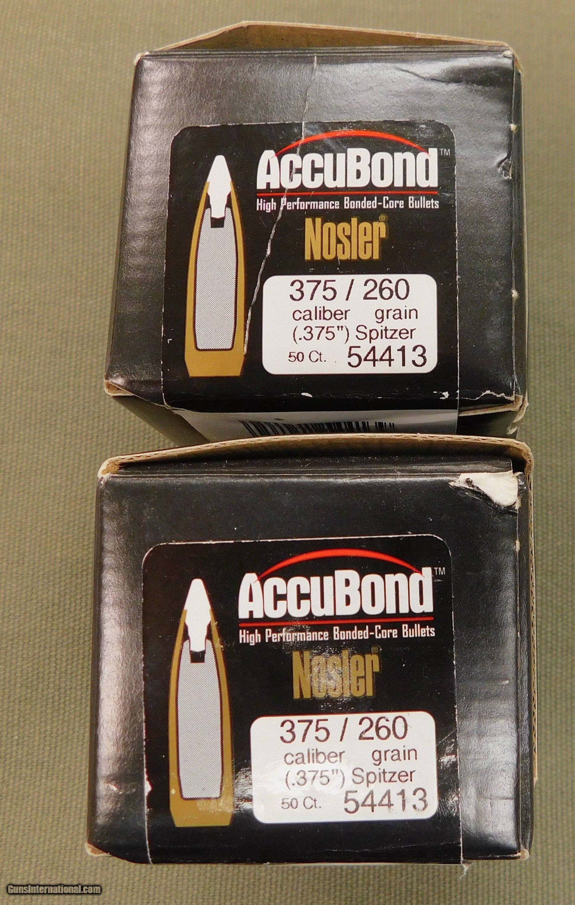 Description: 2 boxes, 260 gr accubond, 375 cal. 75.00 per box SOLD |