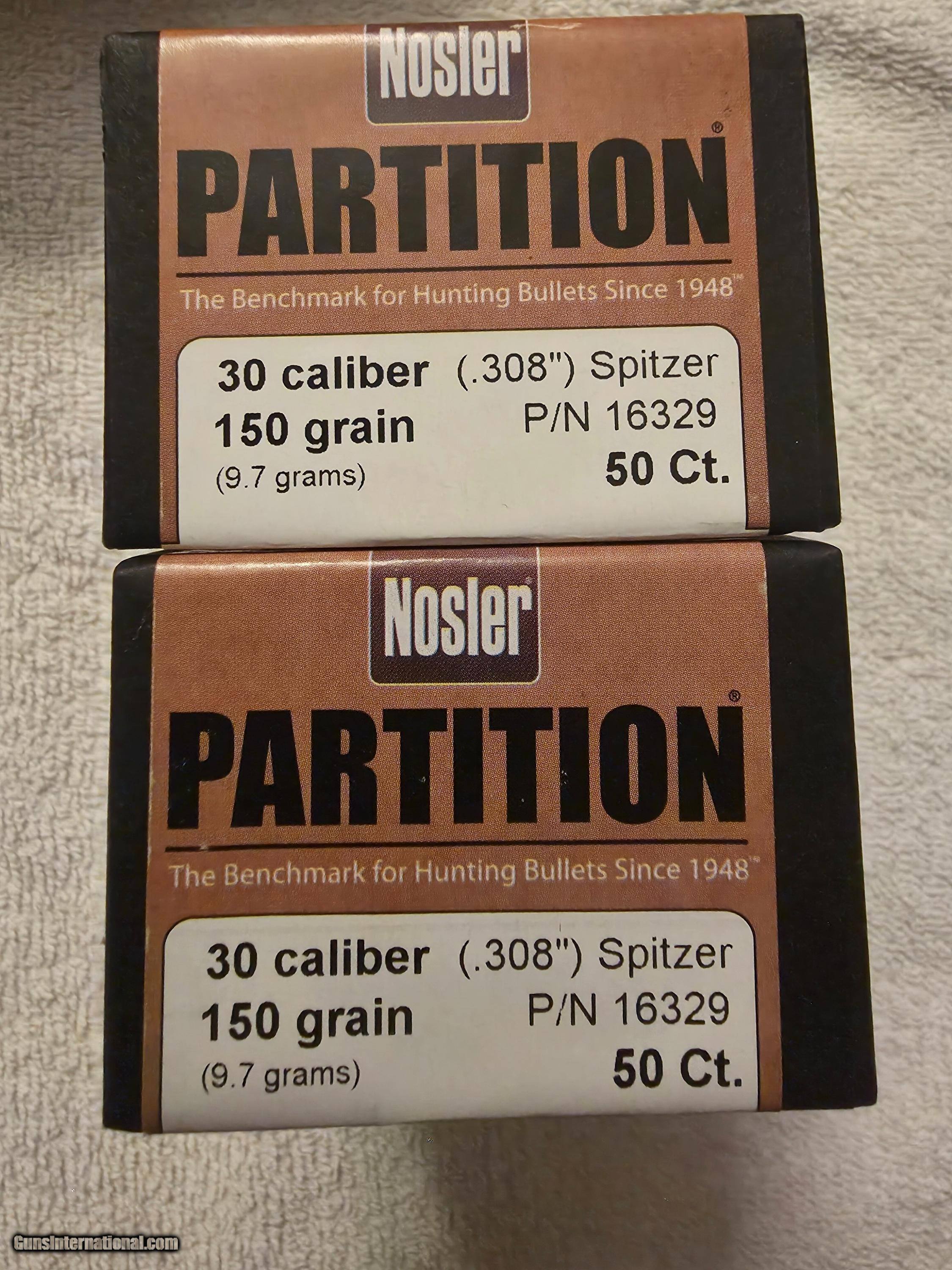 Nosler Partition. 308 cal 150 gr (2) 50 ct boxes