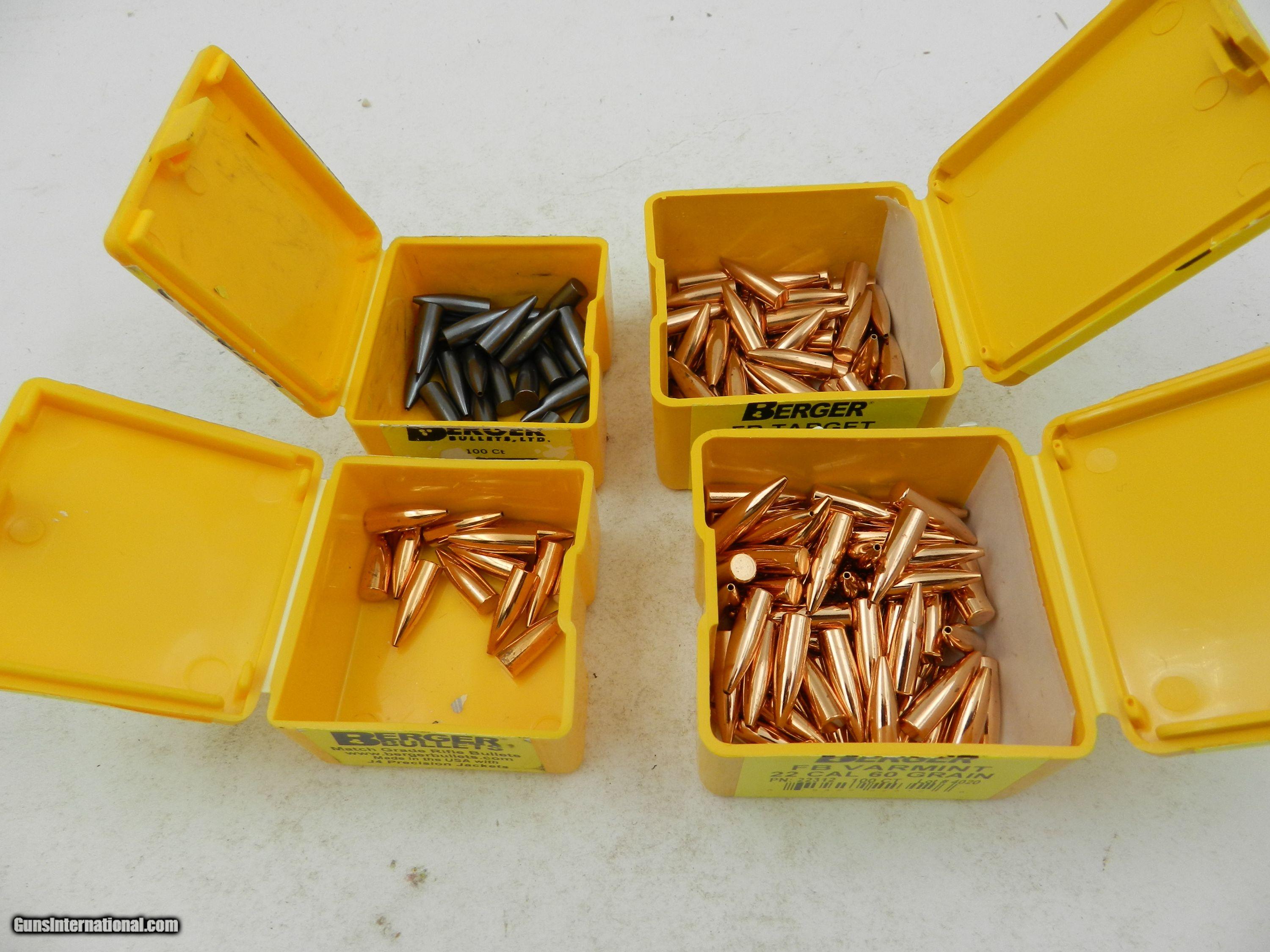Description: Reloader's Lot of Miscellaneous Bullets: 14 Boxes 1 Sealed Box of Berger 22 cal 55 gr FB Target bullets: 100 pieces Mfg part # 22410 1 Box of Berger 22 cal 55 gr FB Target bullets: 45 pieces Mfg part # 22410 1 Sealed Box of Berger 22 cal 60 gr FB Varmint bullets: 100 pieces Mfg part #22312 1 Box of Berger 22 cal 60 gr FB Varmint bullets: Approx 50 pieces Mfg part #22312 1 Box of Berger 22 cal 52 gr FB Target bullets: 13 pieces Mfg part #22408 1 Box of Berger 22 cal 52 gr FBHP bullets: Approx 25 pieces 1 Box of Sierra 22 cal 52 gr HPBT Match bullets: Approx 35 pieces Mfg part #1410 1 Box of Sierra 22 cal 53 gr HP Match bullets: Approx 60 pieces Mfg part #1400 1 Box of Nosler 22 cal 55 gr Ballistic Tip Spitzer bullets: Approx 250 pieces Mfg part #39560 1 Box of Bruno 22 cal 52 gr HP bullets: 11 pieces 1 Box of Hornady 22 cal 55 gr V-Max Moly bullets: Approx 85 pieces Mfg part # 22713 1 Box of Hornady 22 cal 55 gr V max Moly bullets: Approx 35 pieces Mfg part #22713 1 Box of Hornady 22 cal 52 gr A-Max Match bullets: 10 pieces Mfg part #22492 1 Box of Hornady 22 cal 55 gr Spire Point bullets: Approx 75 pieces Mfg part #2265 Free Shipping Free Local Pickup California residents pay 7.75% sales tax. SOLD |