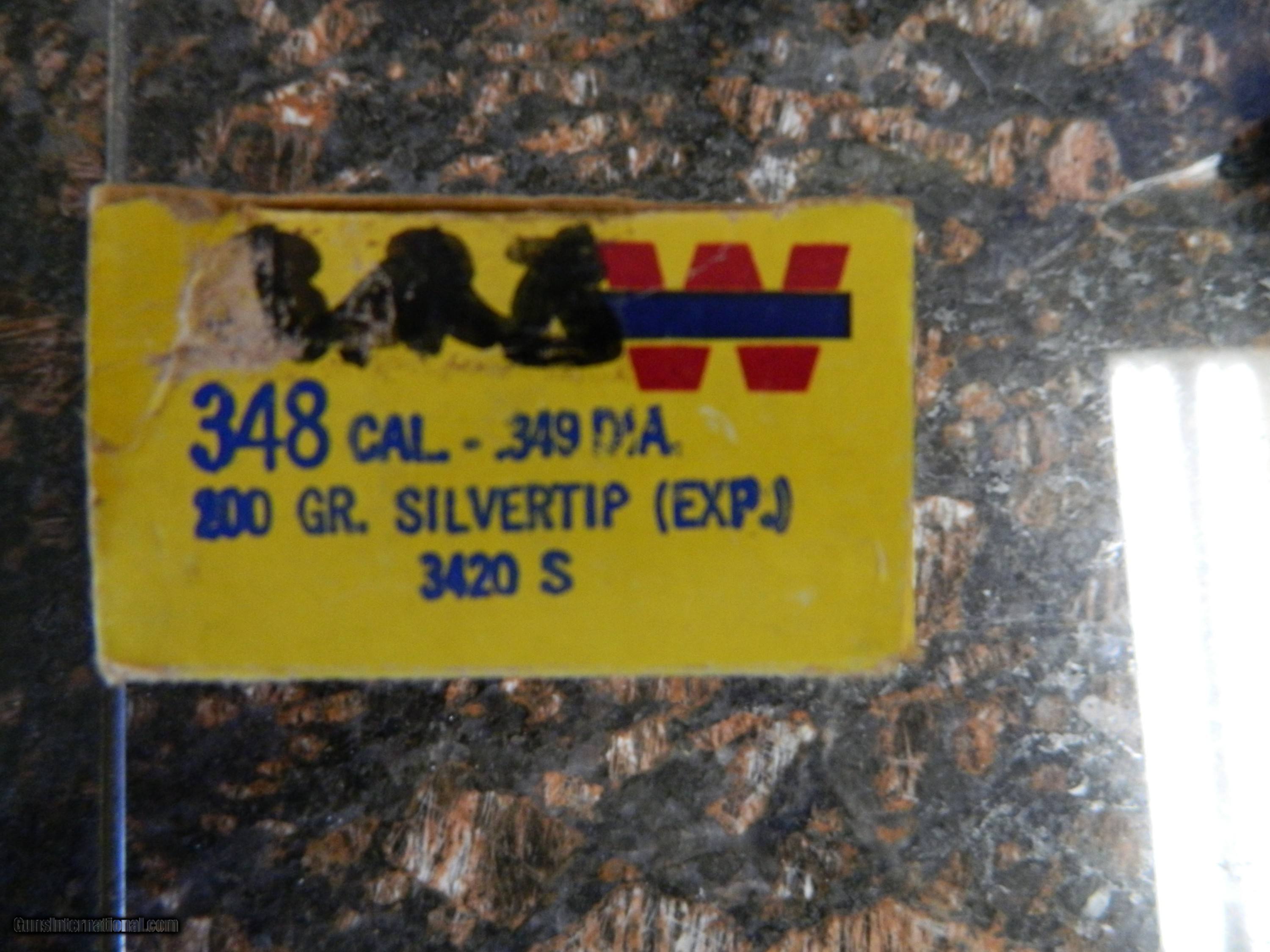 Description: 1 box Winchester 200 gr. Silvertip HARD TO FIND! SOLD Rifle Caliber: .348 Winchester |