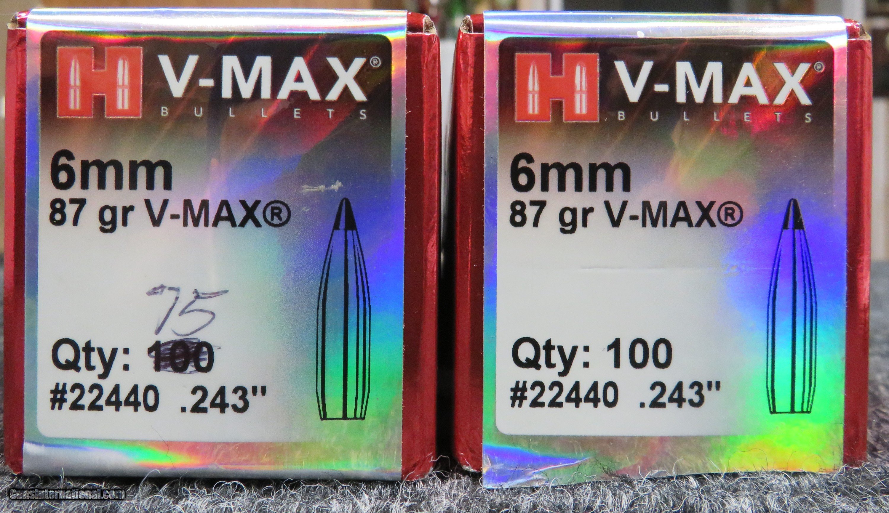 Description: I am getting out of reloading and have lots of leftover 6mm & .30 cal. bullets that I'm offering at bargain prices. Here's the list: