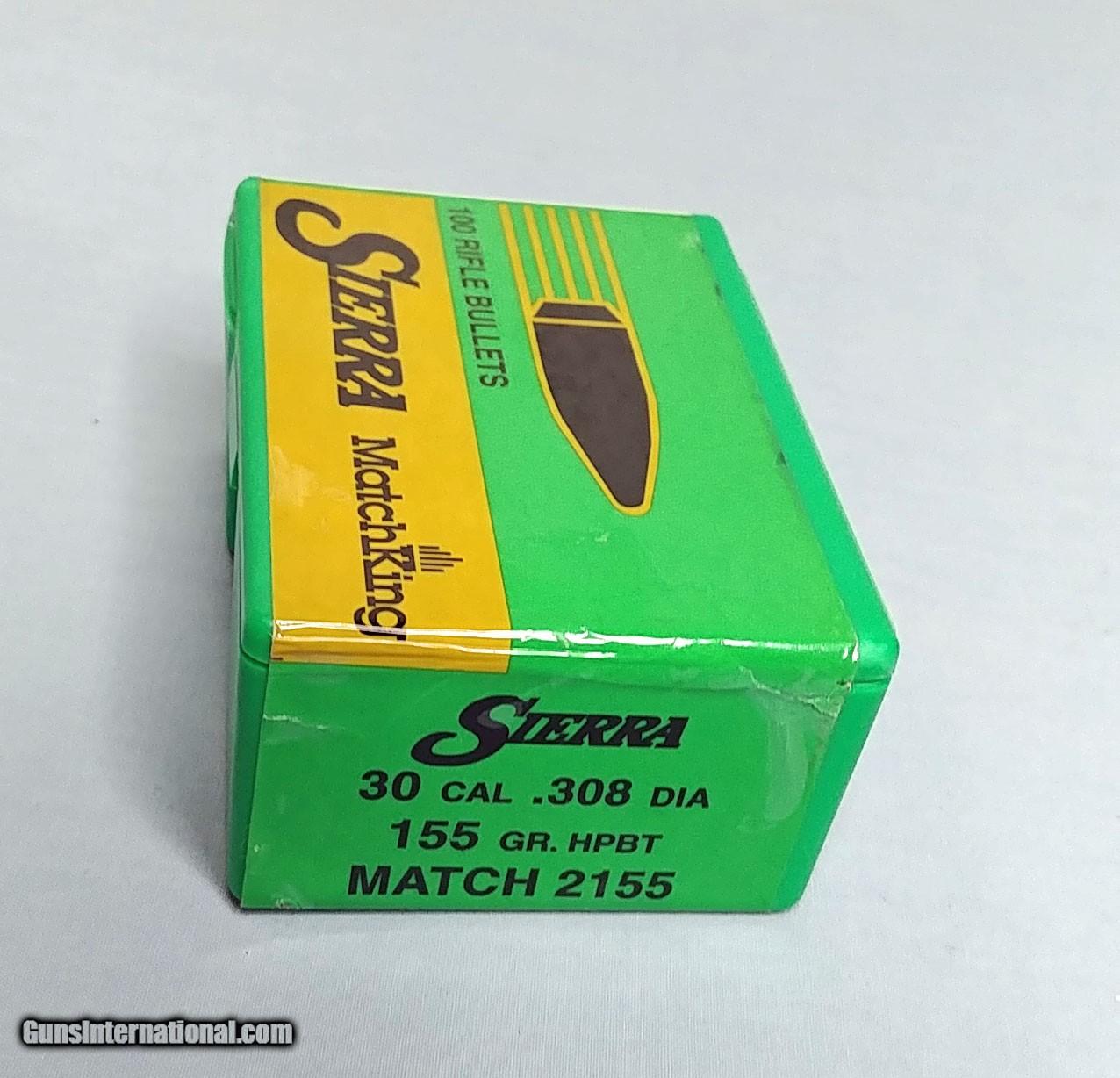 Description: This is a full, factory sealed box of Sierra Matchking Match 30 Cal .308 155 Grain HPBT. 100 bullets per box. If you send me your mailing address I will give you the exact mailing cost. I only charge the exact amount. Nothing added. SOLD Rifle Caliber: .308 Winchester |