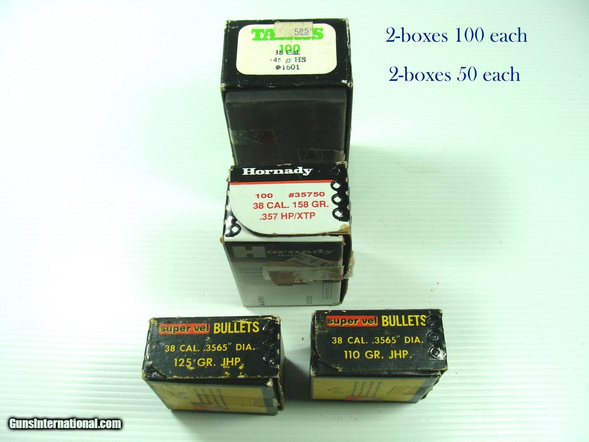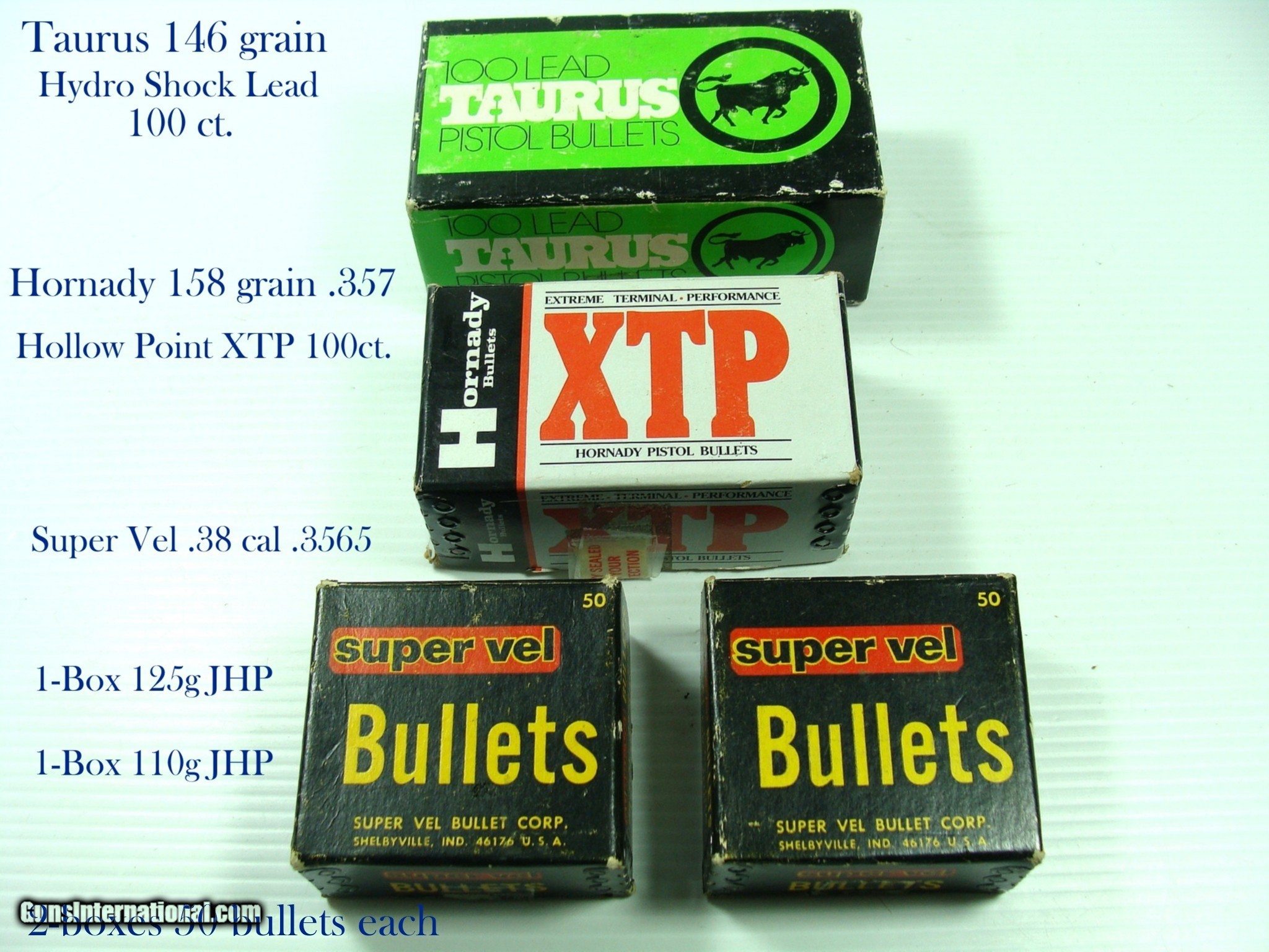Description: TAURUS 146 GRAIN HYDRO-SHOCK LEAD. HORNADY 158 GRAIN .357 JACKETED H.P. XTP SUPER VEL .38/.357 CAL .3565 300 TOTAL BULLETS. SOLD |