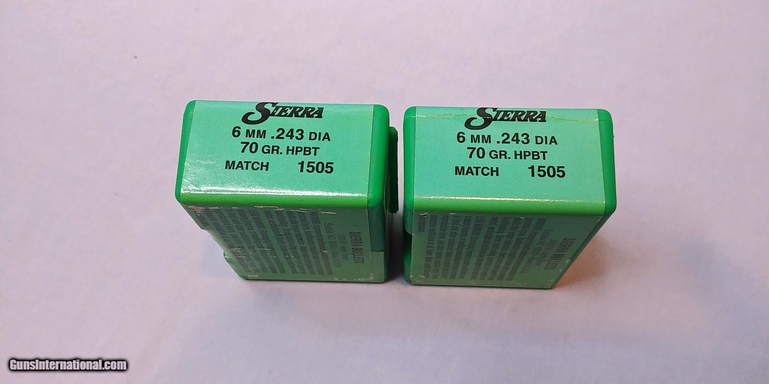 Two Factory Sealed Boxes Sierra 6mm .243 70 Grain HPBT Matchking Bullets 100 per Box.