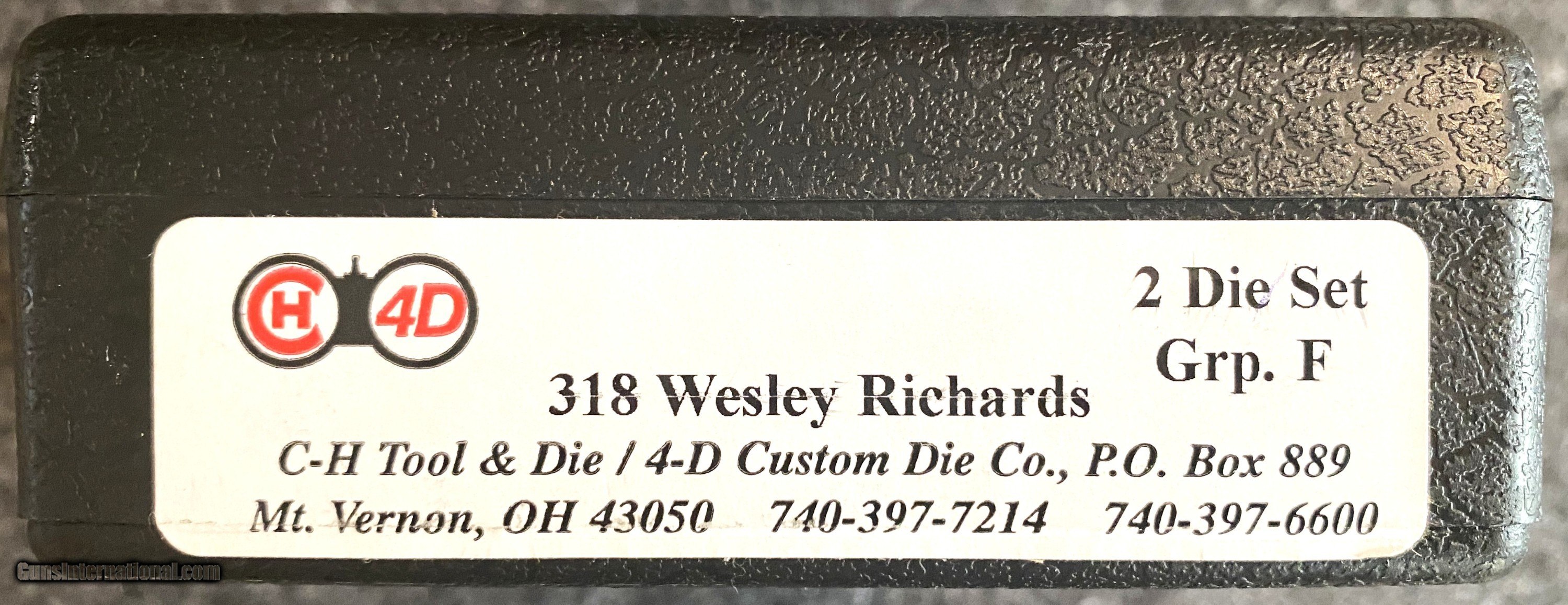 Description: These dies are from a private collection. These are reloading dies for a 318 Wesley Richards made by C-H Tool and Die. The dies are in Excellent condition and an RCBS shell holder is included. SOLD Rifle Caliber: .318 Westley Richards |