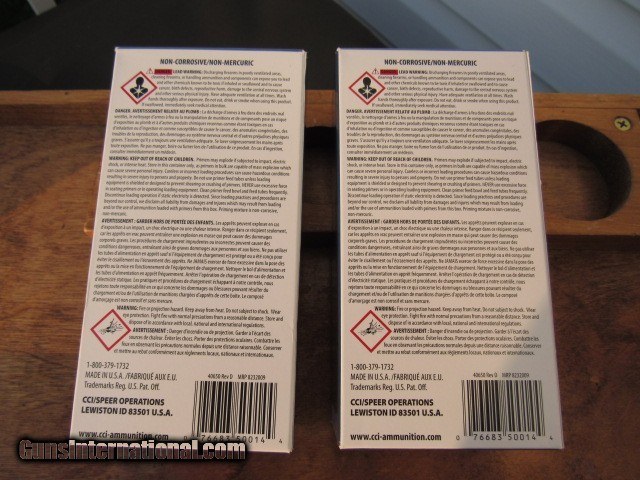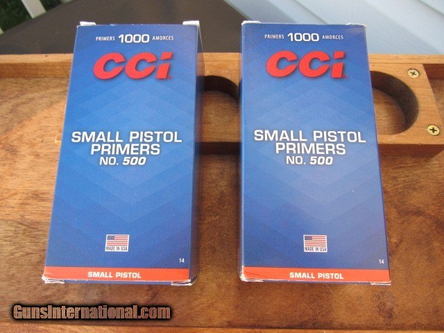 Description: ** UPDATED 9/1/2021 ** - ONE BRICK OF 1000 SOLD, ONE BRICK OF 1000 STILL AVAILABLE FOR $160 ! New stock CCI small pistol primers. Each brick has 1,000 pieces. Box and individual sleeves in perfect condition with each box showing remnants of a shelf tag. CCI part number 500. Will sell separately or as a lot, your choice, see pricing. Primers have been very tough to secure lately so call now to grab 'em before they're gone! TERMS: Hawaii and Alaska buyers please contact me for a shipping quote. We do ship to California! No international sales. Non-gun item so it can ship directly to you assuming your local laws allow it. Please know what is legal for your state as there is no return/inspection privilege on ammo and primers. Payment by bank check, personal check or money order. All major credit cards accepted with 4% convenience fee added. Ships by UPS Ground with tracking. Always interested in Civil War items, as well as used long guns and used antique handguns so please contact me if you have anything for sale or trade. 315.251.4799 with questions or concerns. Please keep in mind that I work a part time job afternoons during the week and may not be able to immediately respond to your text, phone, or email message. Thanks for looking! Reasonable offers are entertained and welcomed. SOLD |