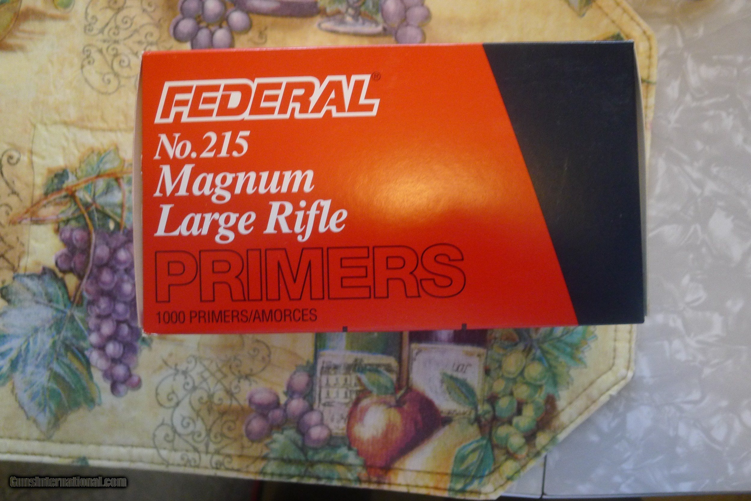 Description: SOLD one box of 1000 FEDERAL 215 LARGE MAGNUM RIFLE PRIMERS. Buyer pays UPS ground shipping, $30.00 Questions use emailas contact Waiting payment from Mark SOLD |