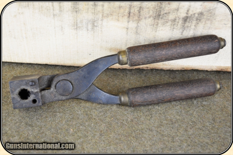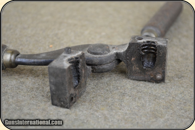Description: .45-90 Mold with original handles. The sprue cutter is missing, but could easily replaced. The mold cavity has been packed with grease and should be well preserved. About 85% original blue remaining SOLD |