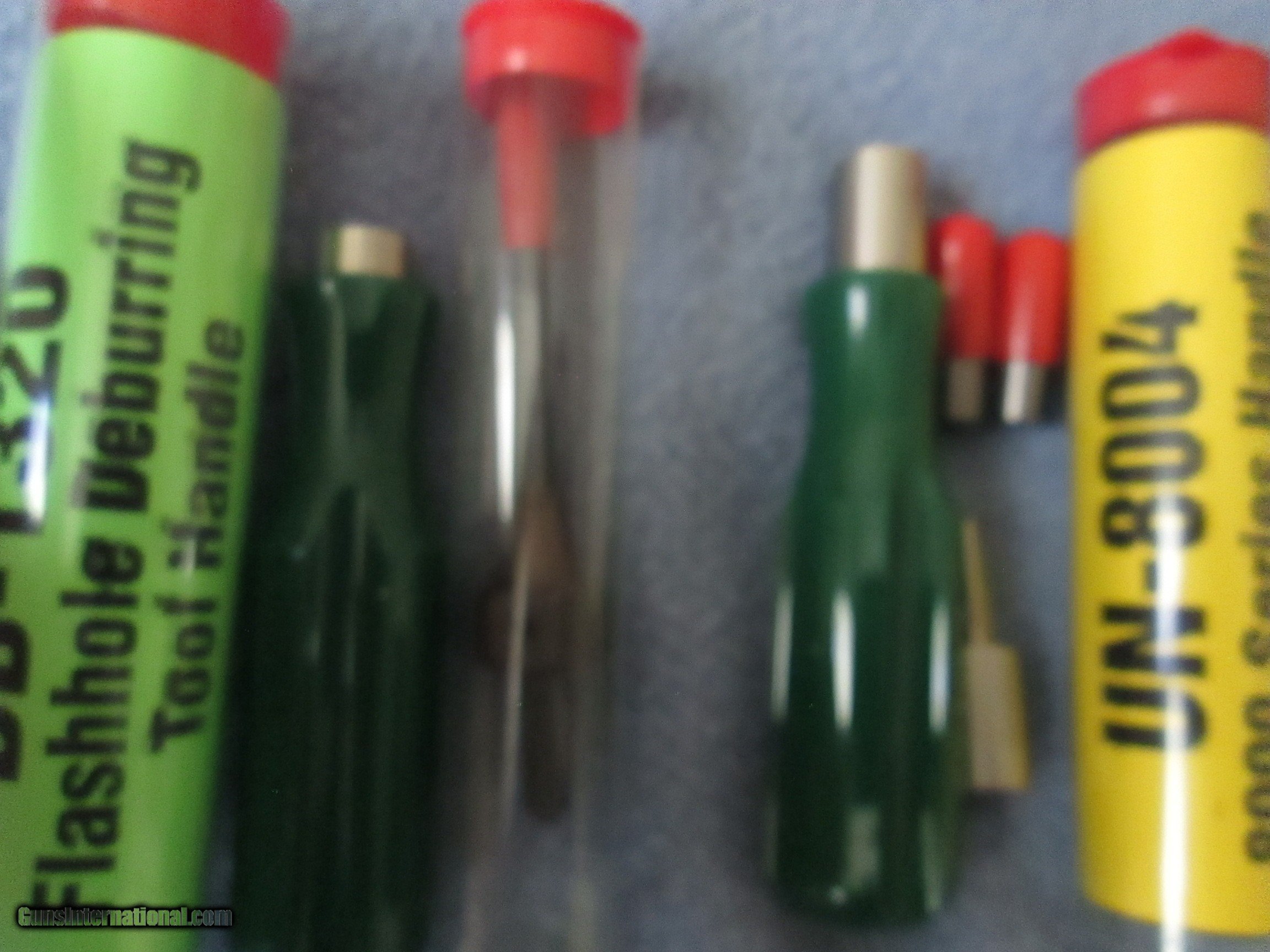 Description: The following tools are included: Primer pocket uniformers for small and large primers with handle and power tool adapter. Flash hole burr remover with handle. Flash hole cleaner. Primer pocket gauges for small and large primers. Primer flipper. Shipping is included. SOLD |