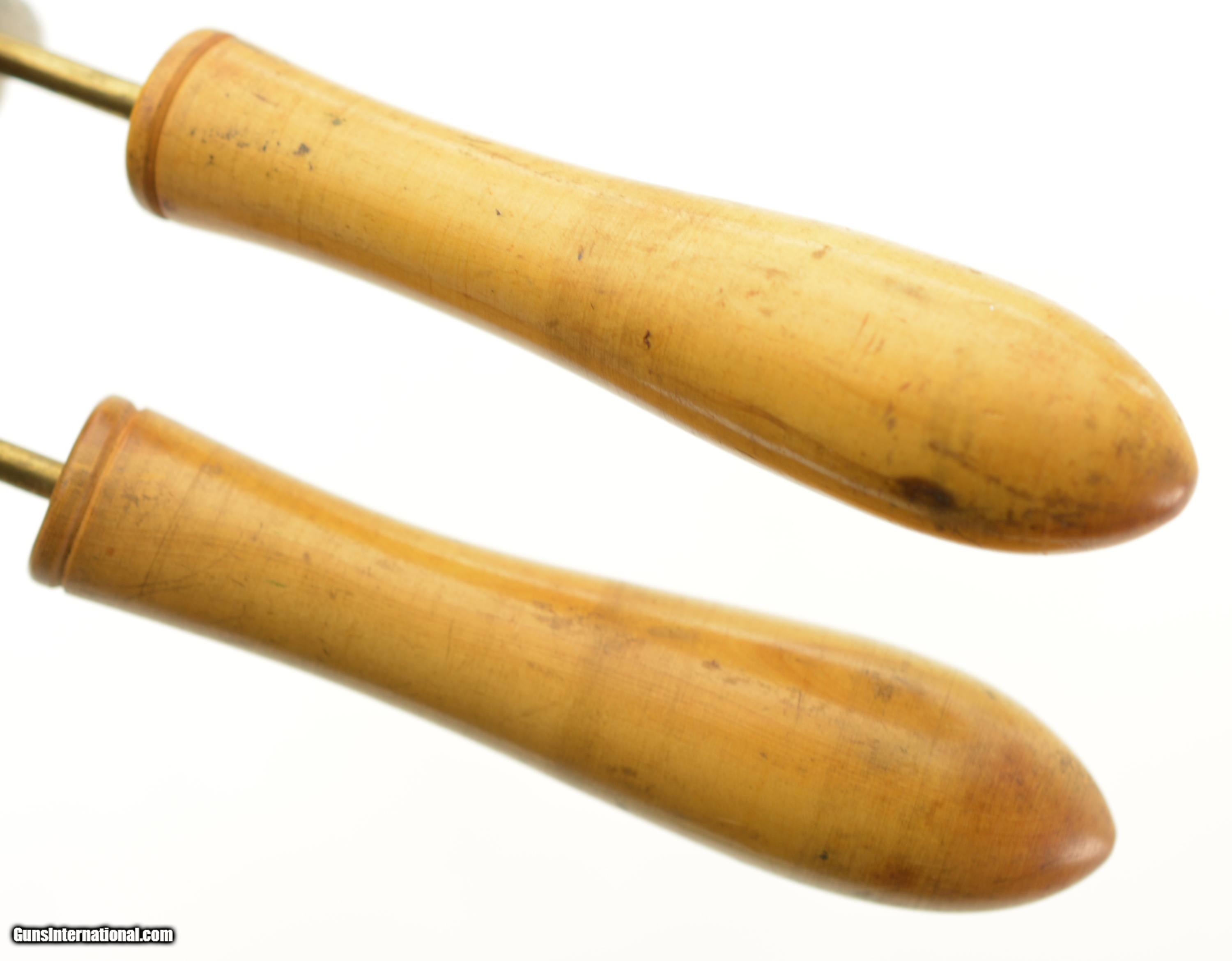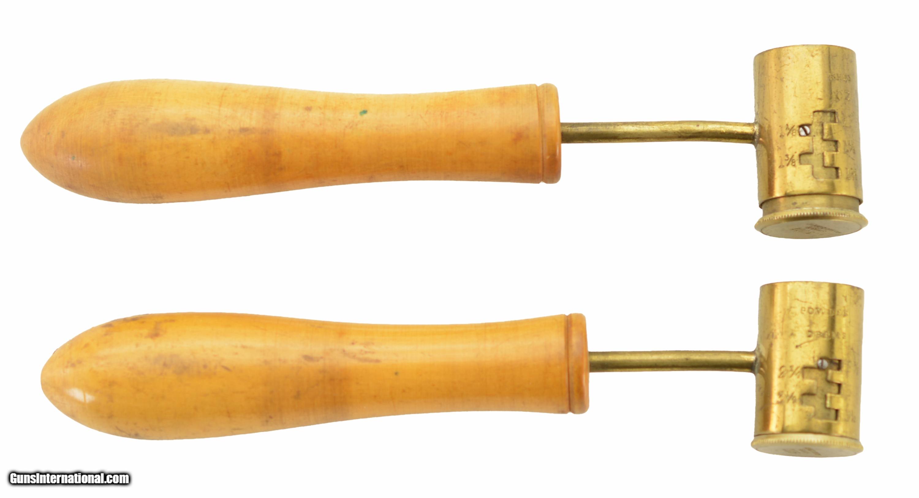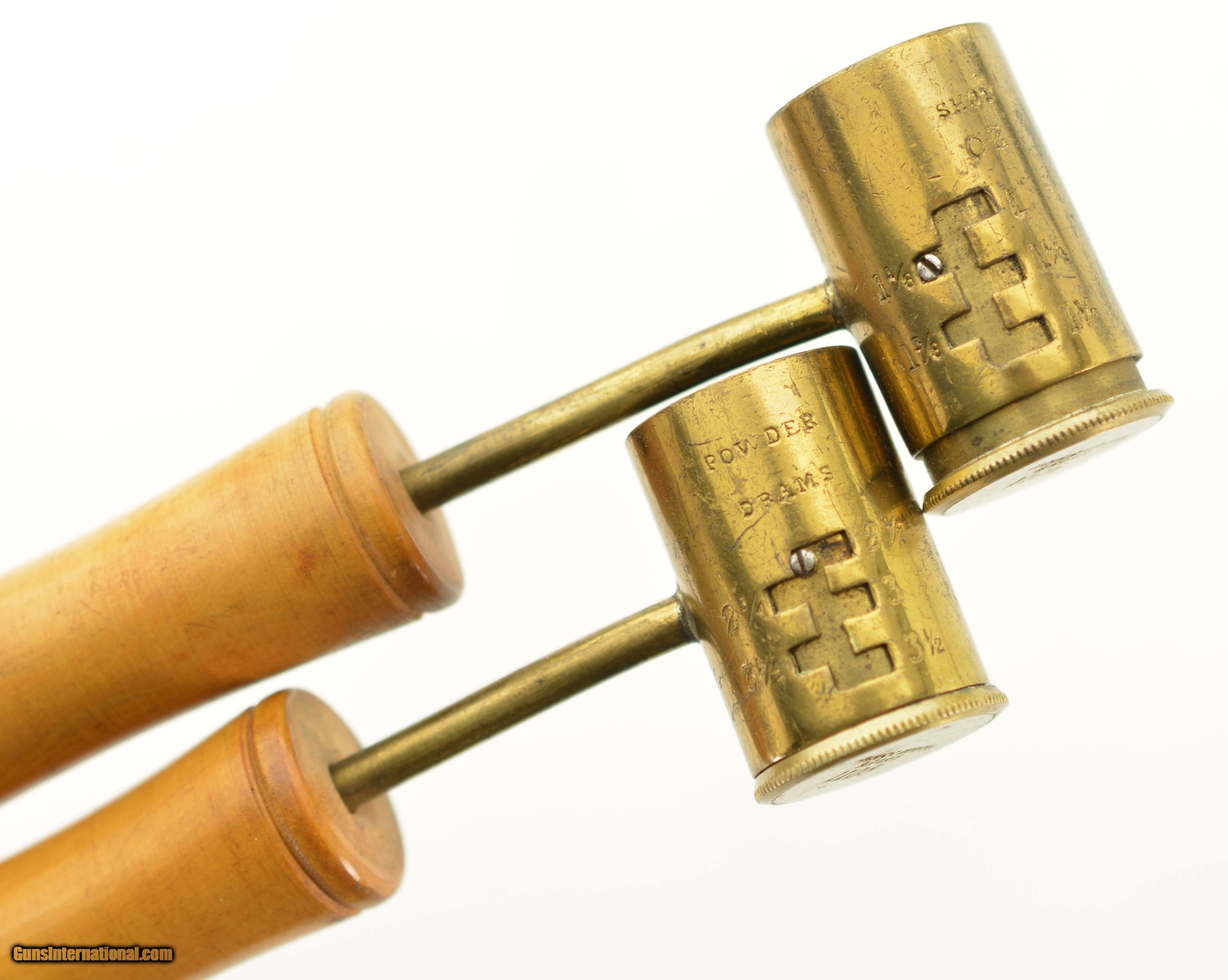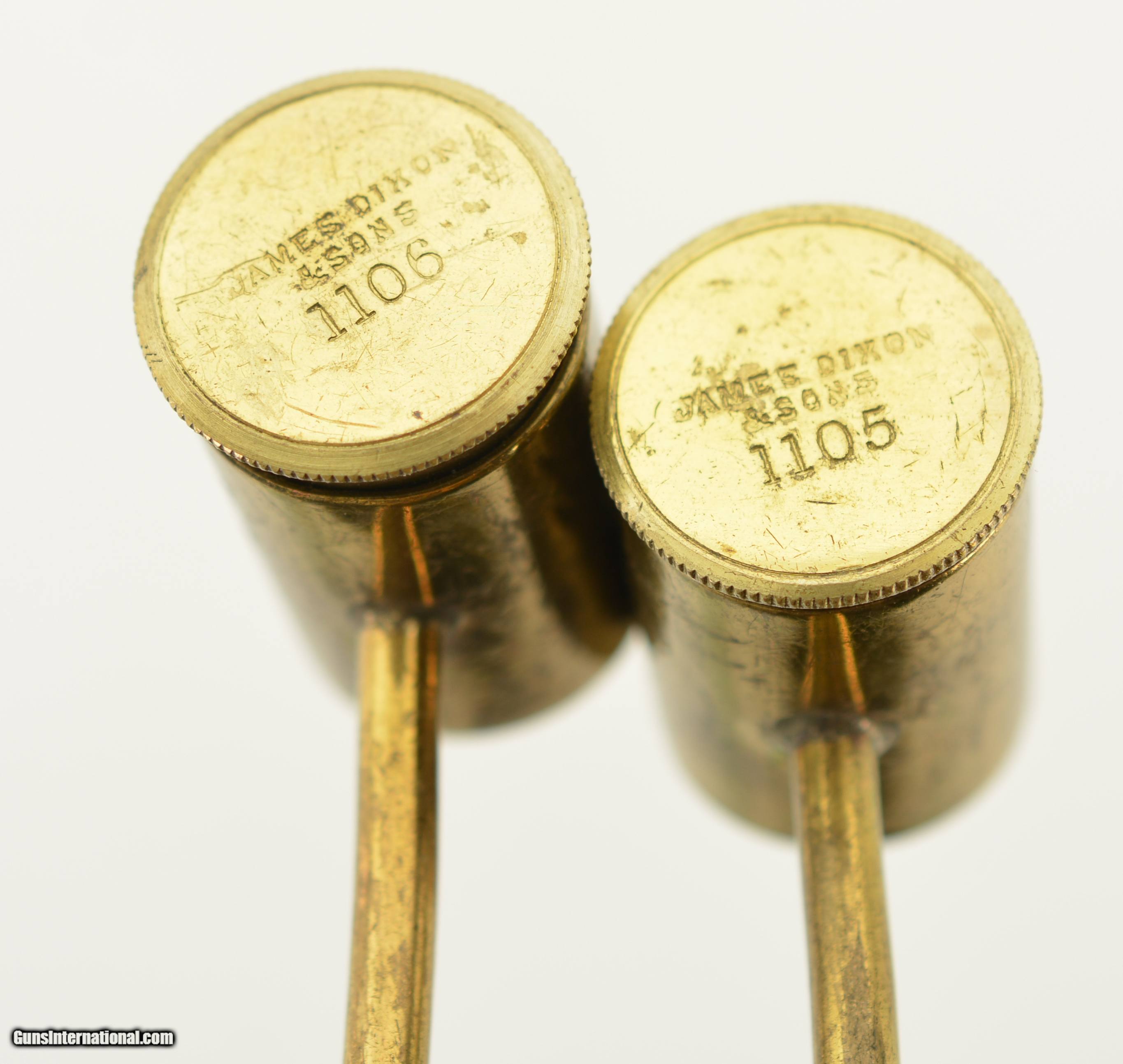Description: This is a pair of James Dixon & Sons adjustable brass and hardwood powder and shot measures. The powder measure is labeled “James Dixon & Sons 1105" and the shot measure “James Dixon & Sons 1106." Both are in excellent condition. SOLD Manufacturer: James Dixon & Sons Model: Tool |