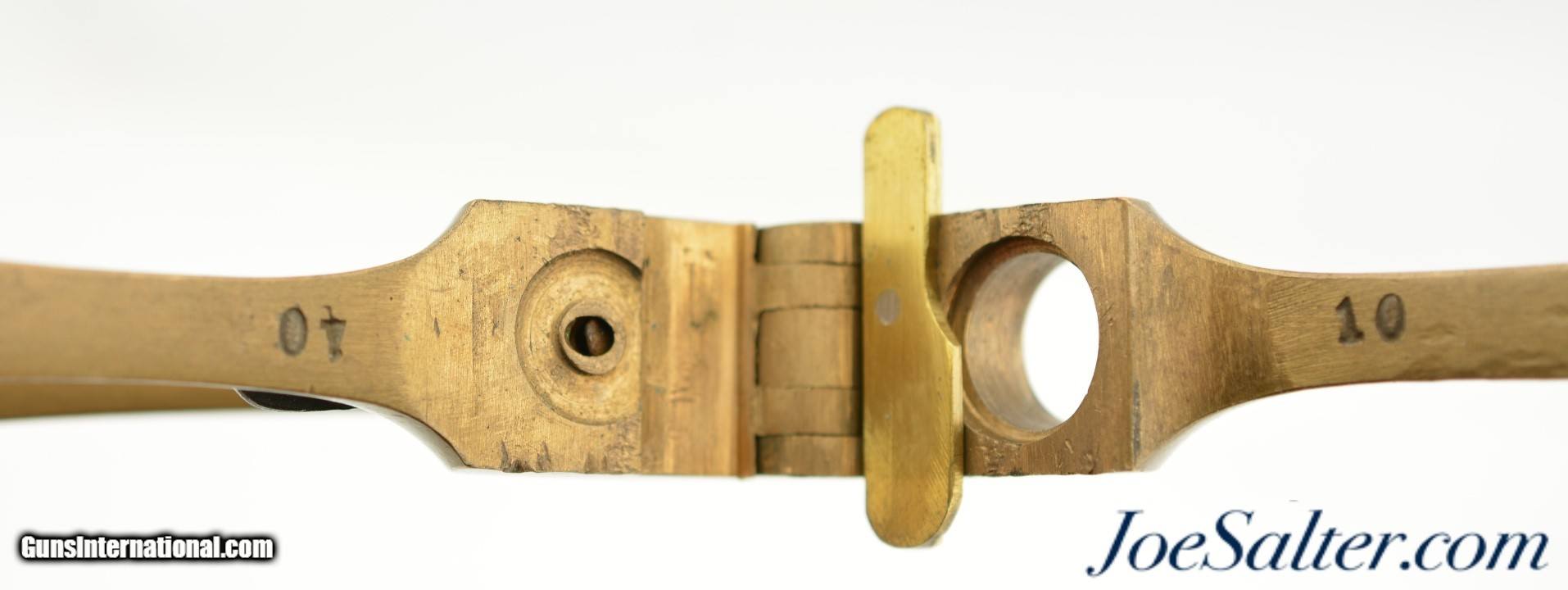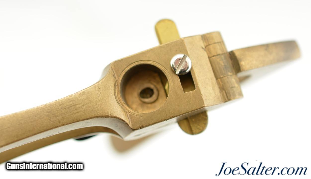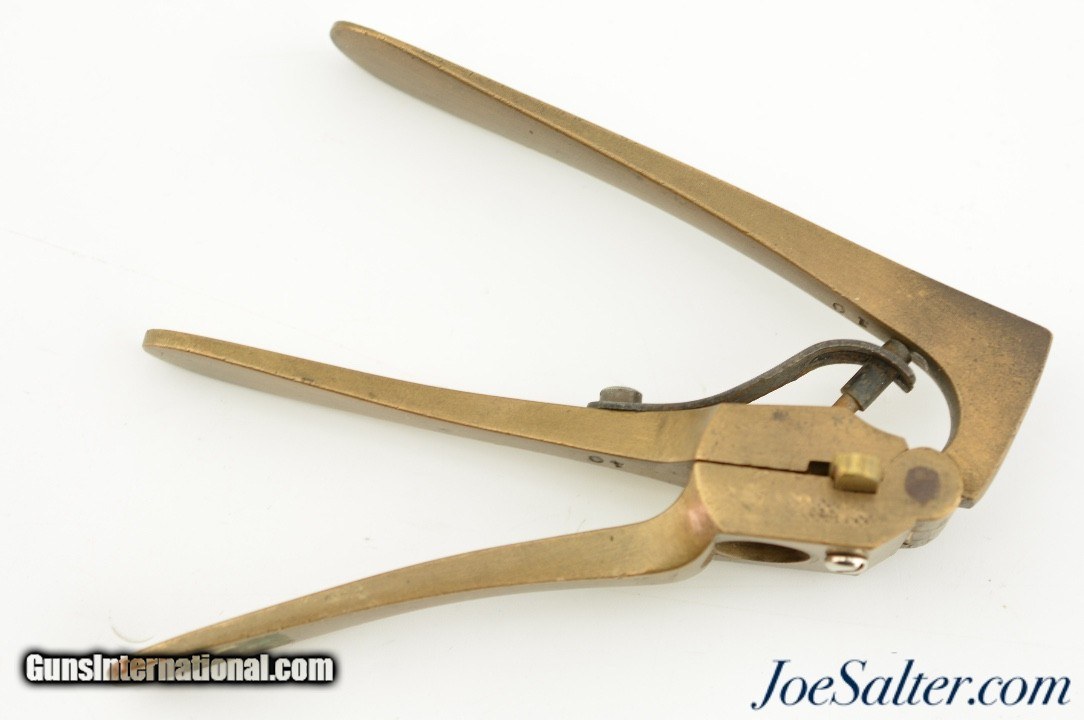 Description: This is an excellent example of a brass body 11mm berdan capper de-capper. The brass handles are all stamped "10" with no manufactures marks. The steel spring and plunger are in very good condition and a new screw of the cartridge keeper. The tool functions as designed.; SOLD |