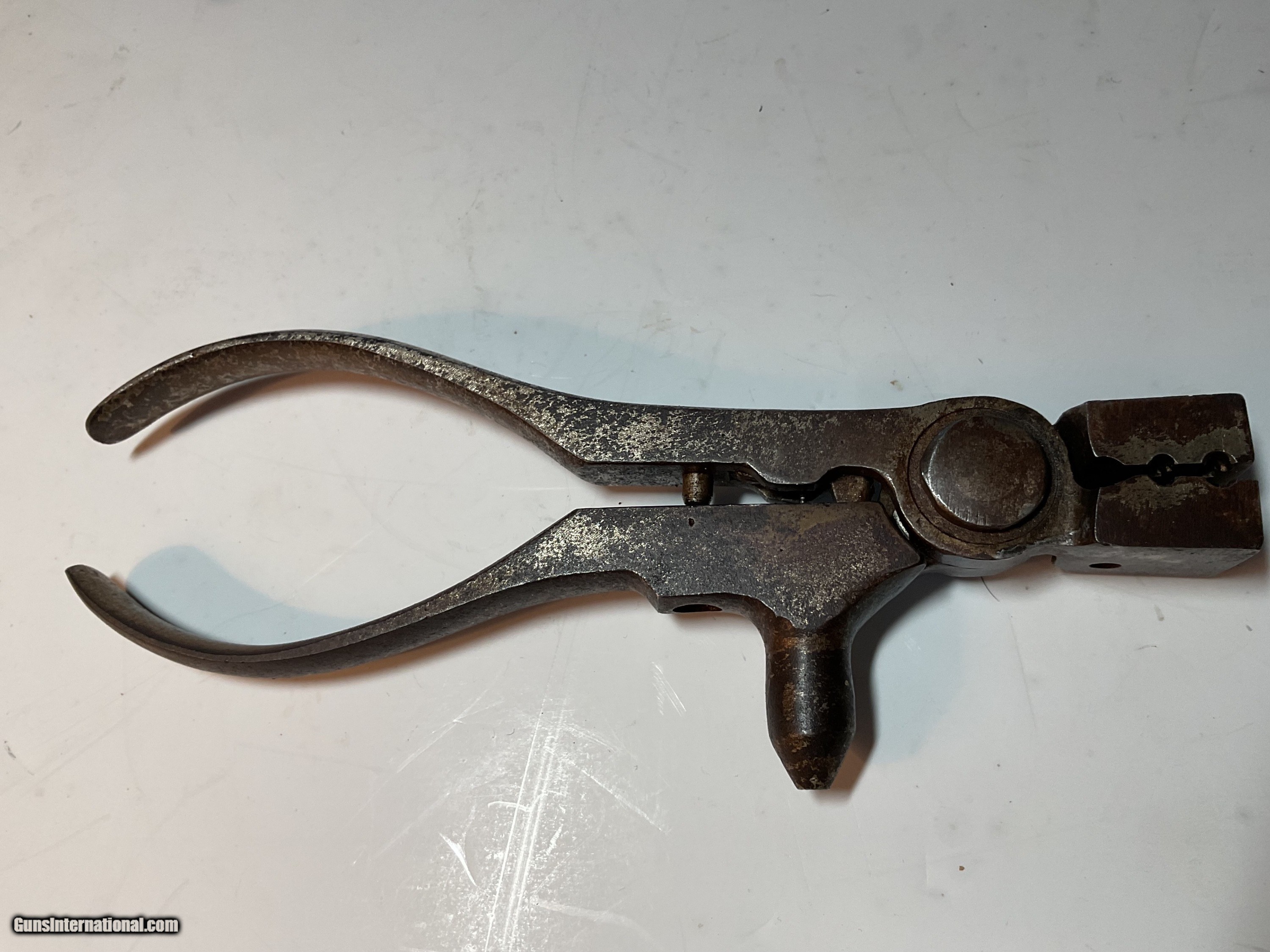 Description: Ideal Reloading Tool 32 S&W Short 4th Variation Rare enough caliber that I couldn't find an example in my entire collection. It the short short 32 S&W. Nice tool with Decapping pin and Instruction sheet. Missing sprue cover but I may find one in my stuff if you don't have one. Has 2 cavitys for 32 cal. Pellet bullets in the bottom....see photos. Wayne Koecher Pob 537 cooper landing, alaska 99572 651-324-3796 Price: $175.00 Shipping: $12.00 Buy Now Contact Seller |