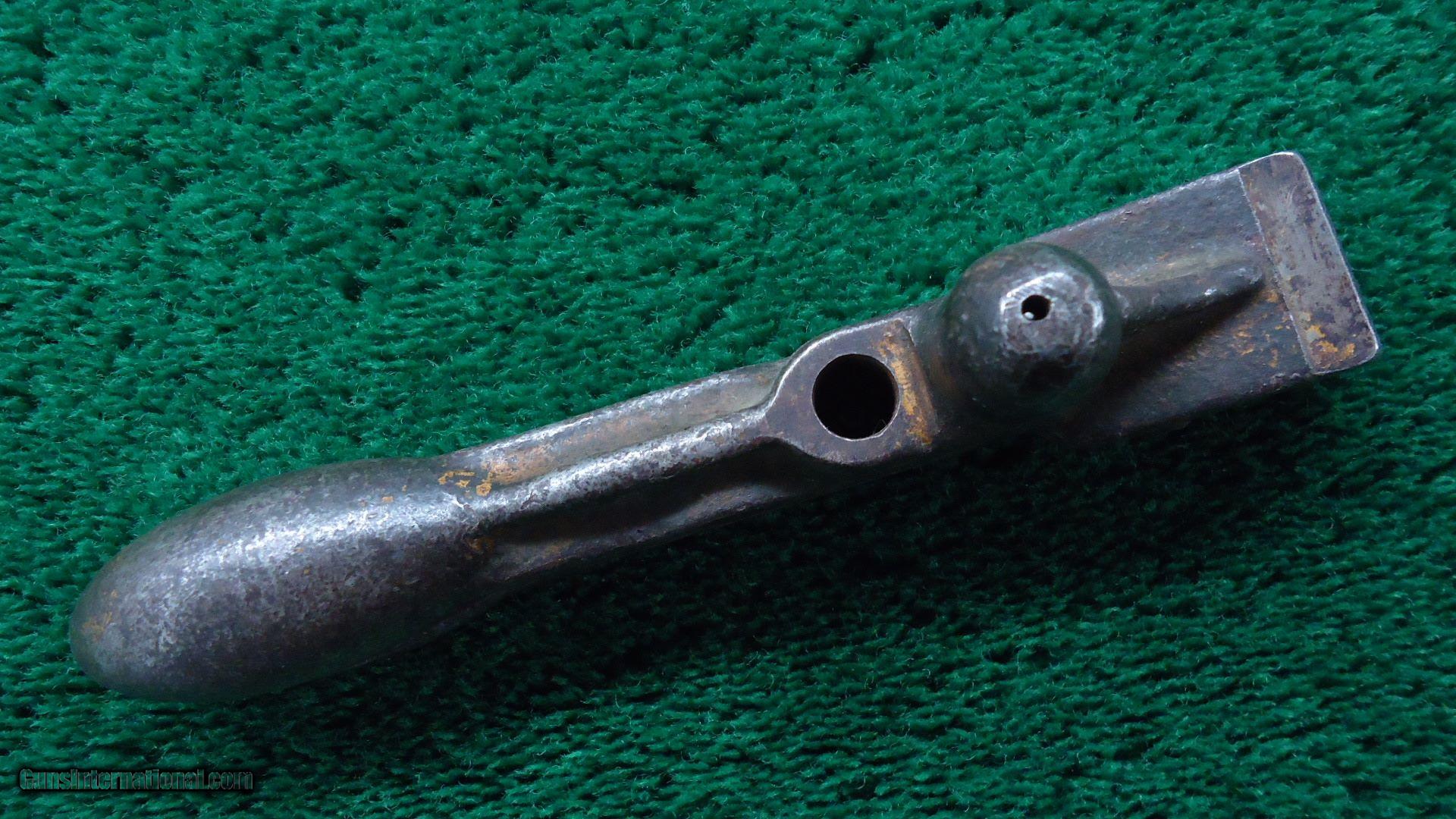 Description: Winchester cast iron loading tool is marked "45/60" on top lever and a faint "Pat Oct 20, 1874" by hinge. With Berdan pick and a 45-60 marked de-capping pin. Traces of the original gold paint remain. This seldom seen tool is a great Winchester collectable for your Model 1876 rifle. Leroy Merz Antique Firearms specializes in antique and vintage Winchesters and other fine American firearms. Since 1965 Mr. Merz has taken part in the world of firearms and has been a contributor to many well known reference books. Just recently we mailed the 127th edition of our privately-published catalog. We have hundreds of additional guns in every price range at our home online. Search for Merz Antiques in google. SOLD |