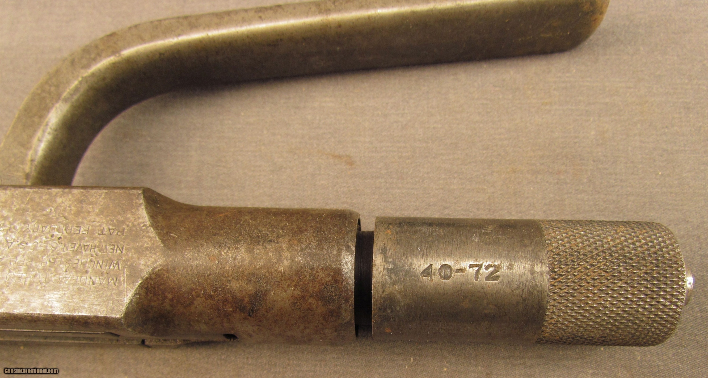 Description: Tool retains about 10% fading original blue in the protected and sheltered areas with the balance gray with scattered oxidation and light corrosion. SOLD Manufacturer: Winchester Model: 1894 Caliber Info: .40-72 Gauge Info: .40-72 |