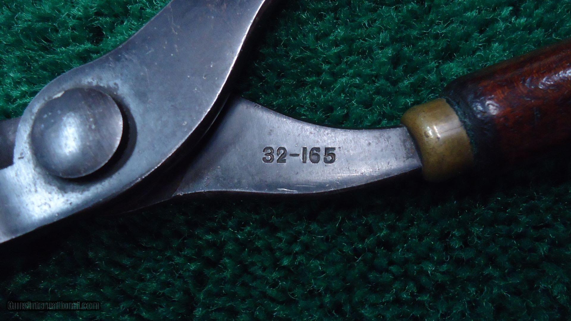 Description: A matched set consisting of a Model 1894 re-loading tool and a 5th Model bullet mold chambered in 32-40 WCF caliber for your Winchester Model 1894 rifle. Good condition set with most all original blue remaining on the mold and a real nice cavity. Mold is for a flat nosed 165 grain bullet for the 32-40 caliber. Tool has most thinning blue with some scratches and is missing the de-capper pin. Leroy Merz Antique Firearms specializes in antique and vintage Winchesters and other fine American firearms. Since 1965 Mr. Merz has taken part in the world of firearms and has been a contributor to many well known reference books. Just recently we mailed the 127th edition of our privately-published catalog. We have hundreds of additional guns in every price range at our home online. Search for Merz Antiques in google. SOLD |