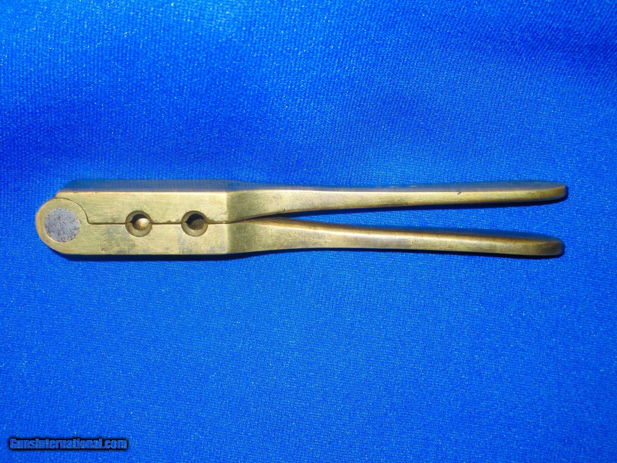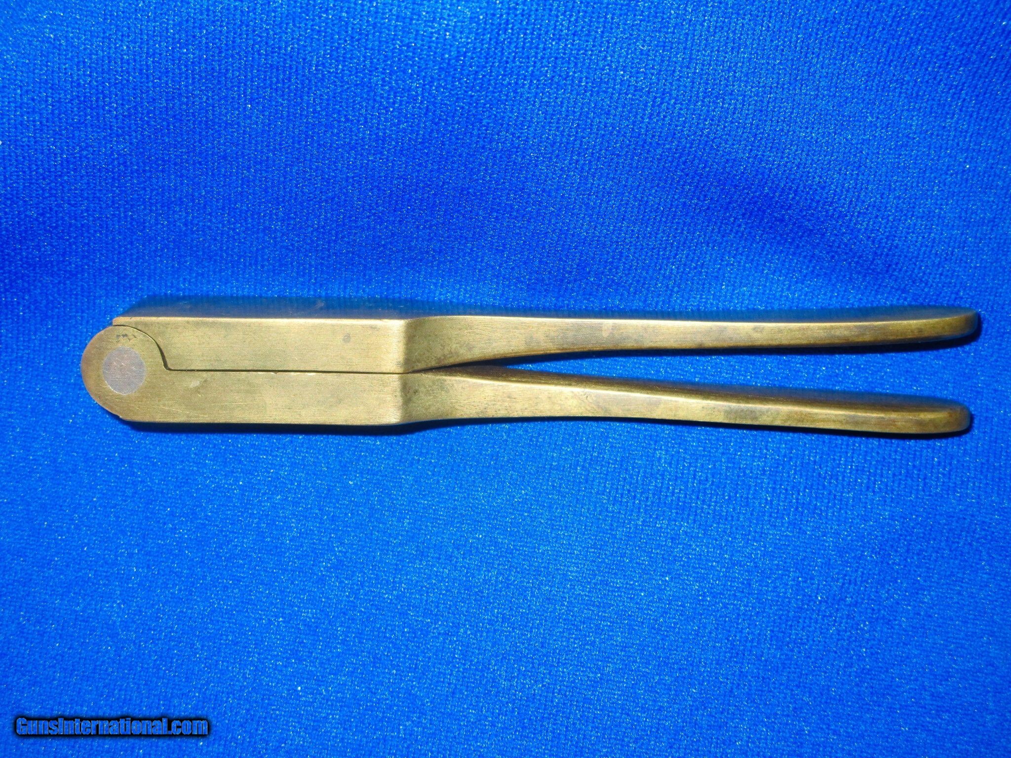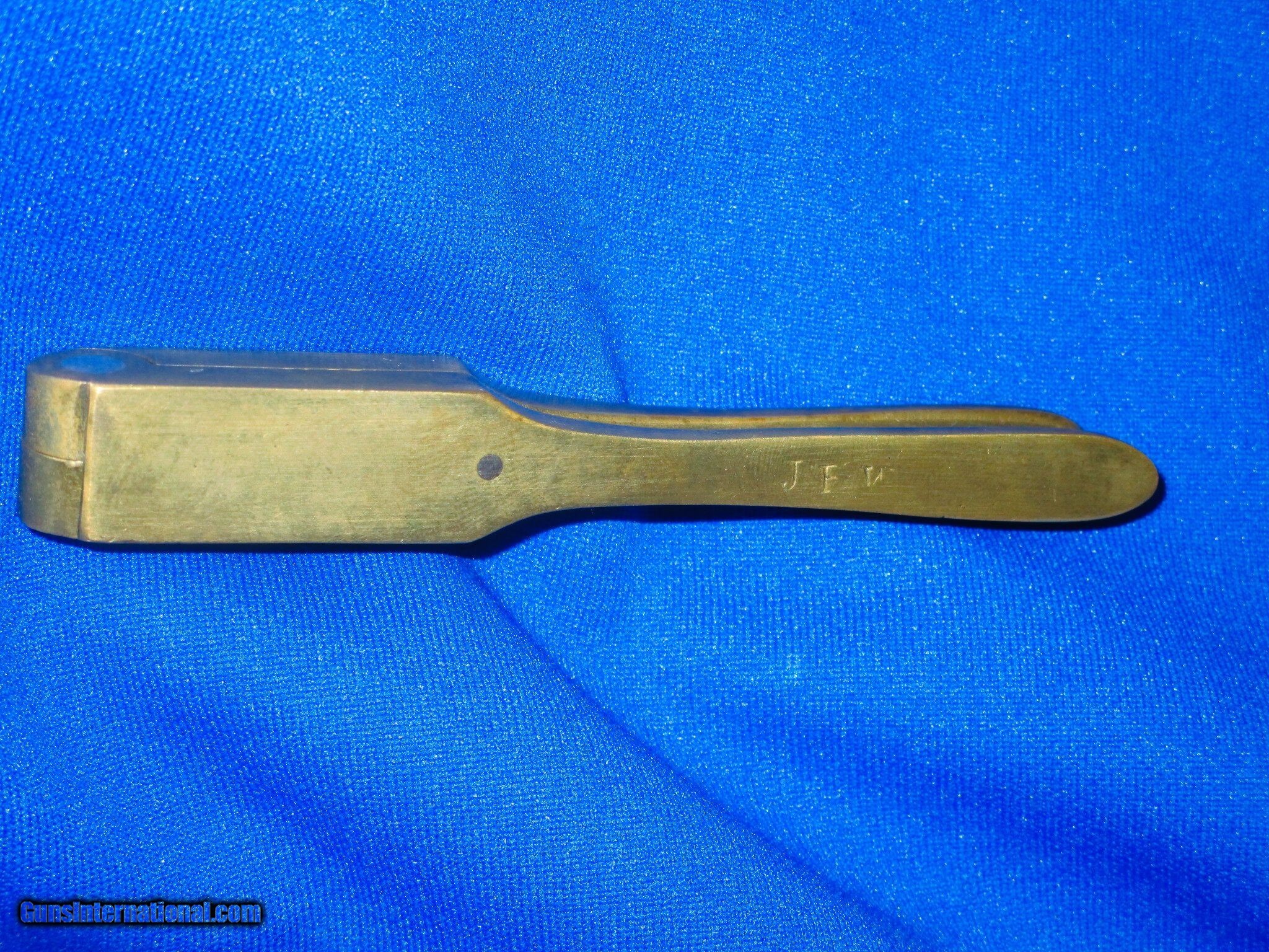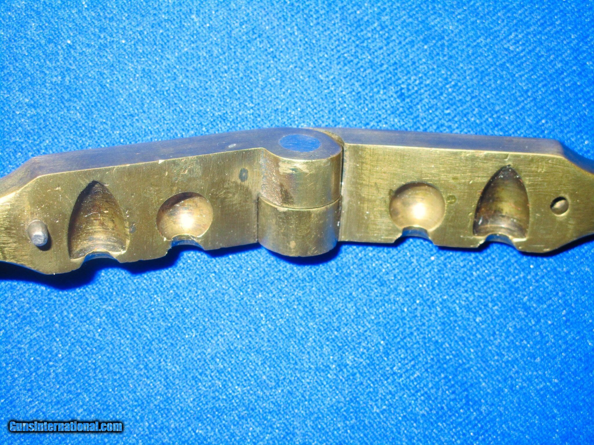Description: A Very Early and Rare Civil War Colt Percussion Baby Dragoon Revolver .31 Caliber Brass Bullet Mold In Nice Untouched Condition. The mold has nice untouched brass and edges. It has a visible "COLT'S/PATENT" on the top that shows wear. The inside cavities are very good. The mold has a very nice untouched patina on it with no dings. The initials "JPW" are finely period stamped on one of the legs. This Is A Very Nice Example Of A Rare "Colt's Patent" Baby Dragoon Revolver .31 Caliber Brass Bullet Mold! SOLD |