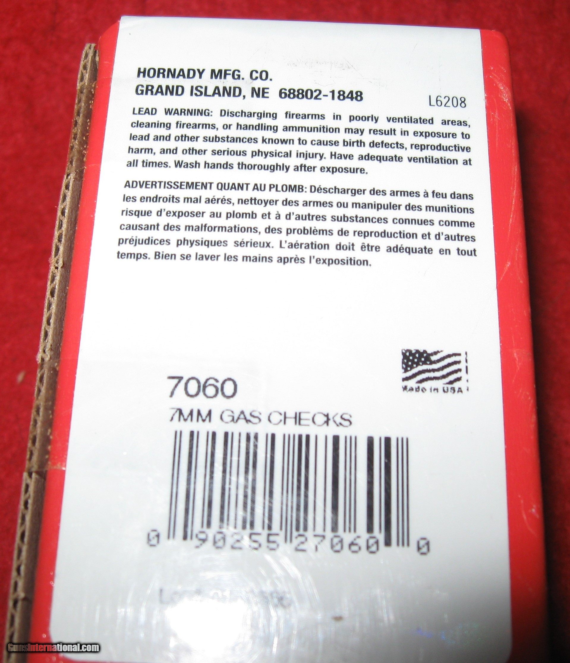 Description: sale pending louie f-HERE'S AN UNOPENED BOX OF 1000 HORNADY #7060 GAS CHECKS FOR CAST BULLETS. SHIPPING IS ACTUAL COST NO HANDLING FEES. SOLD |