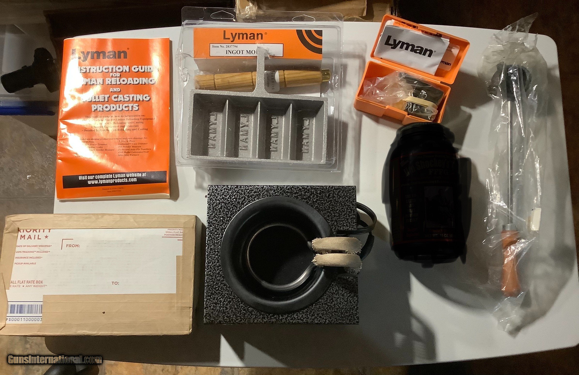 Description: All new, the priority box has 10lbs of pure lead, I never opened it up, the die is for .62 size. Ask questions, shipping will be determined by your zip code, hazmat fees apply. All the Lyman stuff is new! SOLD |