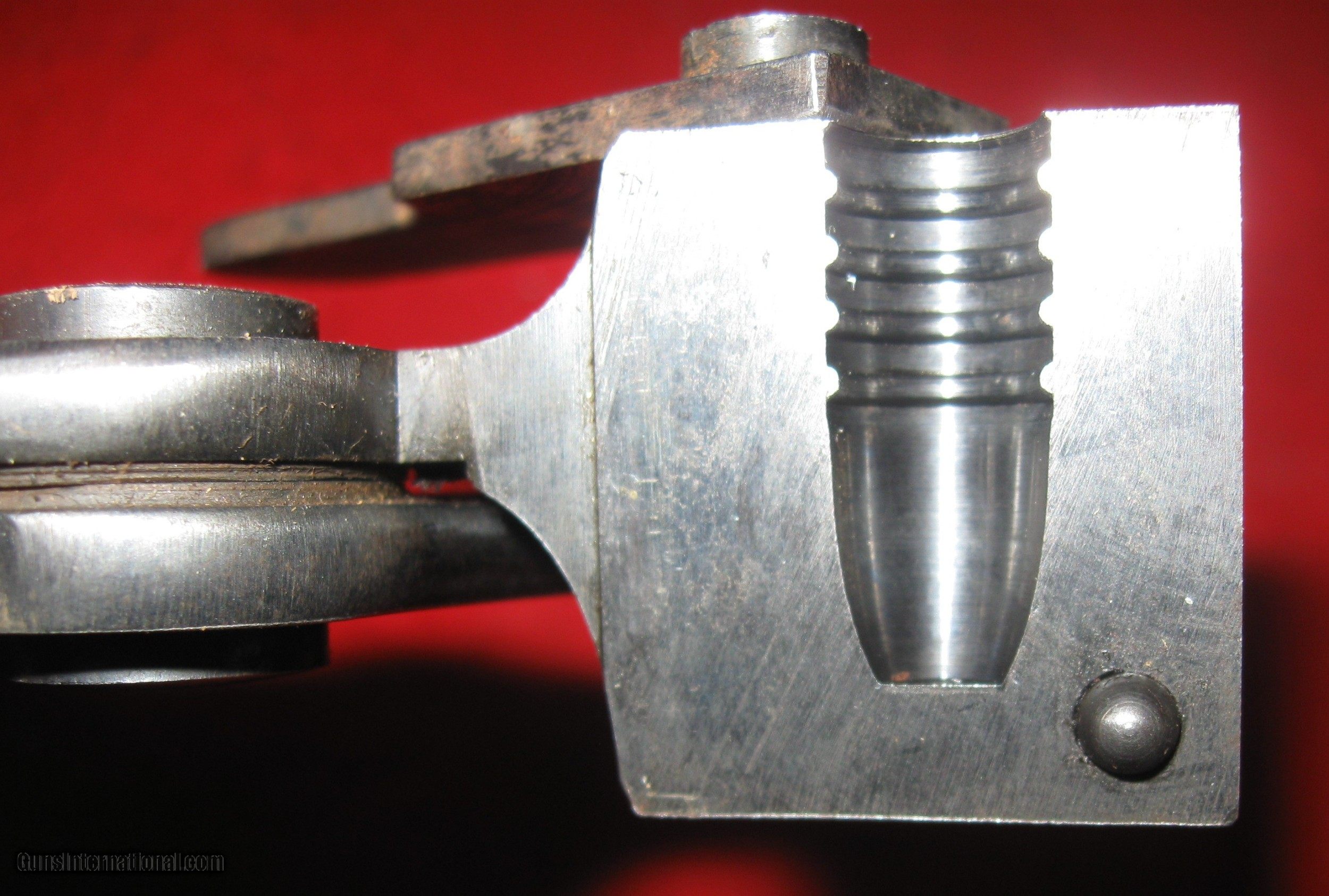 Description: THIS MOLD WAS MADE BY WINCHESTER FOR CASTING BULLETS FOR THE 38-55. THE MOLD IS IN VERY GOOD CONDITION WITH SOME EXTERNAL SCATTERED LIGHT RUST SPOTTING. THE MOLD CAVITY IS IN EXCELLENT CONDITION. IT LOOKS LIKE IT CASTS A 265 GRAIN BULLET. SHIPPING IS $15.50 USPS PRIORITY DIRECT SOLD Rifle Caliber: .38-55 Winchester |