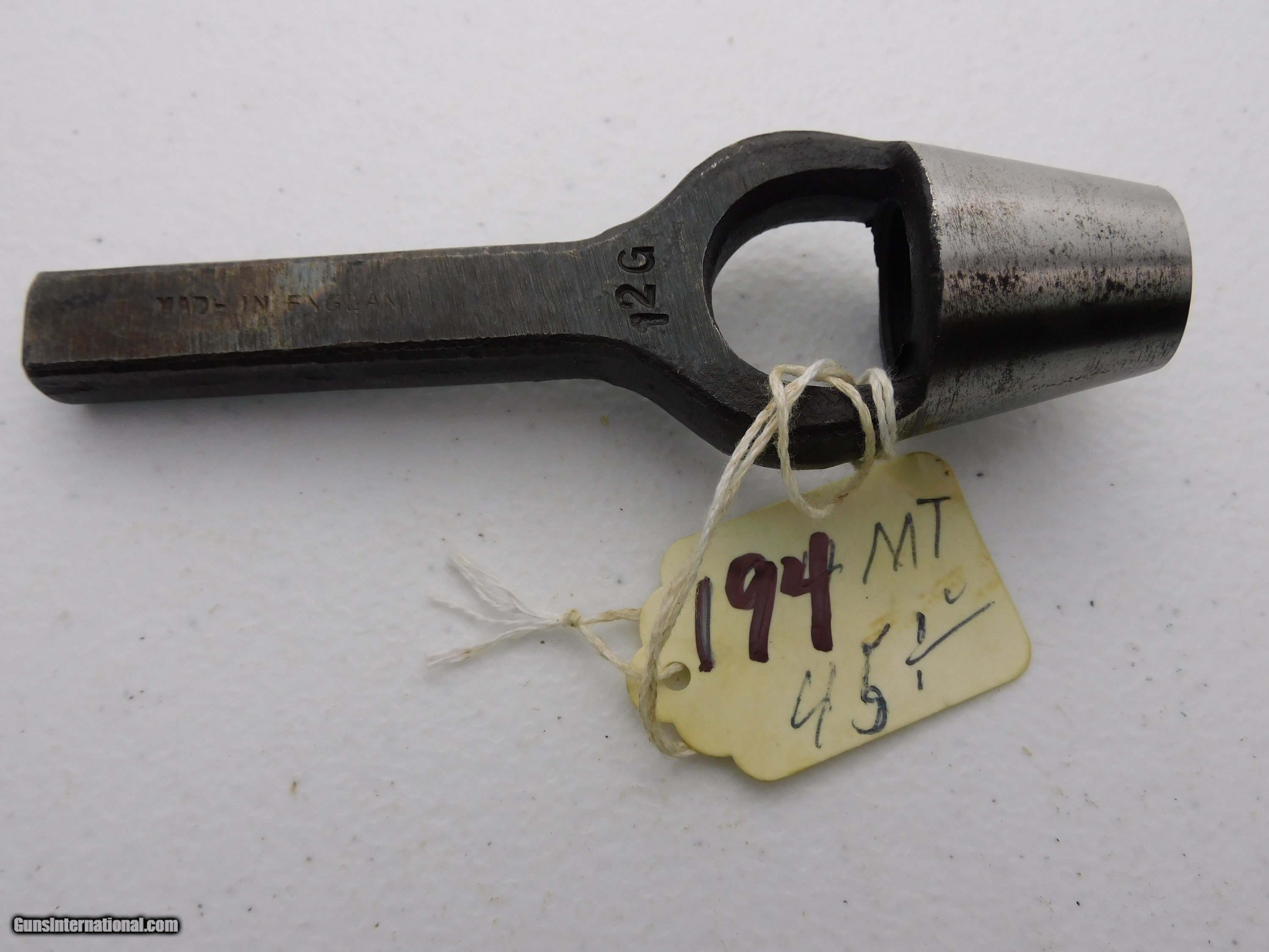 Description: #194MT 12 ga. wad cutter stamped “Made in England”, 12 ga., exc. condition. $45 SOLD |