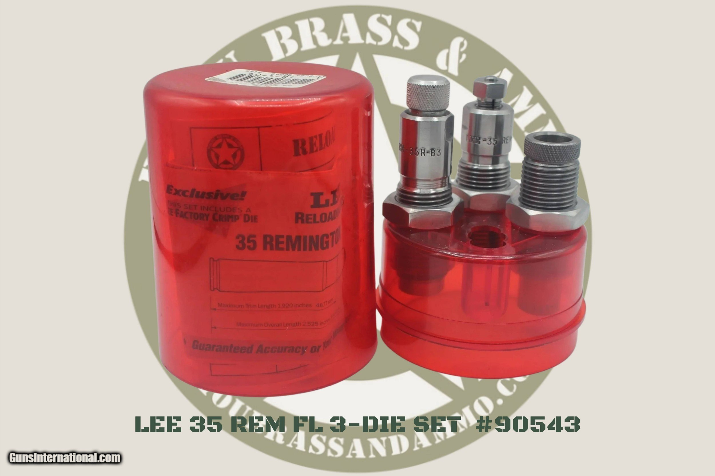 Description: Lee 35 REM FL 3-Die Set #90543 This Lee Precision 35 Remington Full Length 3-Die Set is preowned and in excellent condition. Included are a full length size die, seater die and a lee factory crimp die. Also include are instructions and a reloading data sheet. Specifications