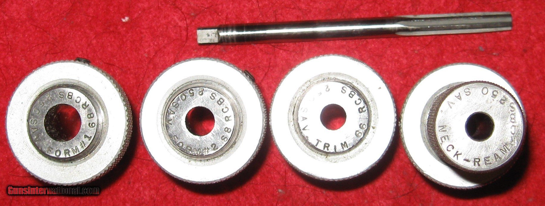 Description: sale pending jeremy r-THIS SET OF CASE FORMING DIES ARE RCBS. THEY WILL FORM 250 SAVAGE CASES FROM 30-06 OR 270 CASES. COMES WITH THE TWO FORMING DIES, A TRIM DIE AND A NECK REAMING DIE WITH REAMER. SHIPS IN A USED RCBS DIE BOX. SHPPING IS $8.50 USPS PRIORITY MAILDIRECT FULLY INSURED SOLD Rifle Caliber: .250-3000 Savage |