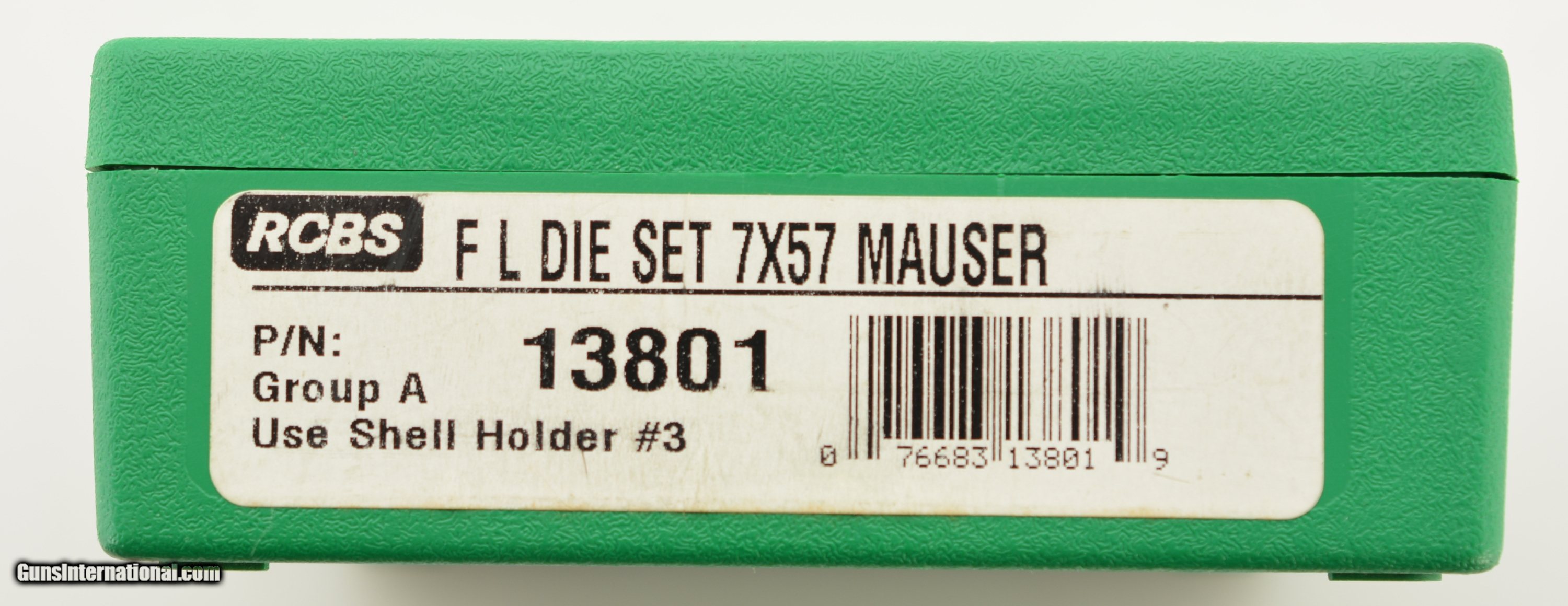 Description: This is a two piece RCBS FL reloading die set for the 7 x 57 Mauser, #13801. Also included is a #3 shell holder. The dies are in excellent used condition and housed in a green plastic RCBS holder. SOLD Manufacturer: RCBS Model: Dies Caliber Info: 7x57 Mauser Gauge Info: 7x57 Mauser |