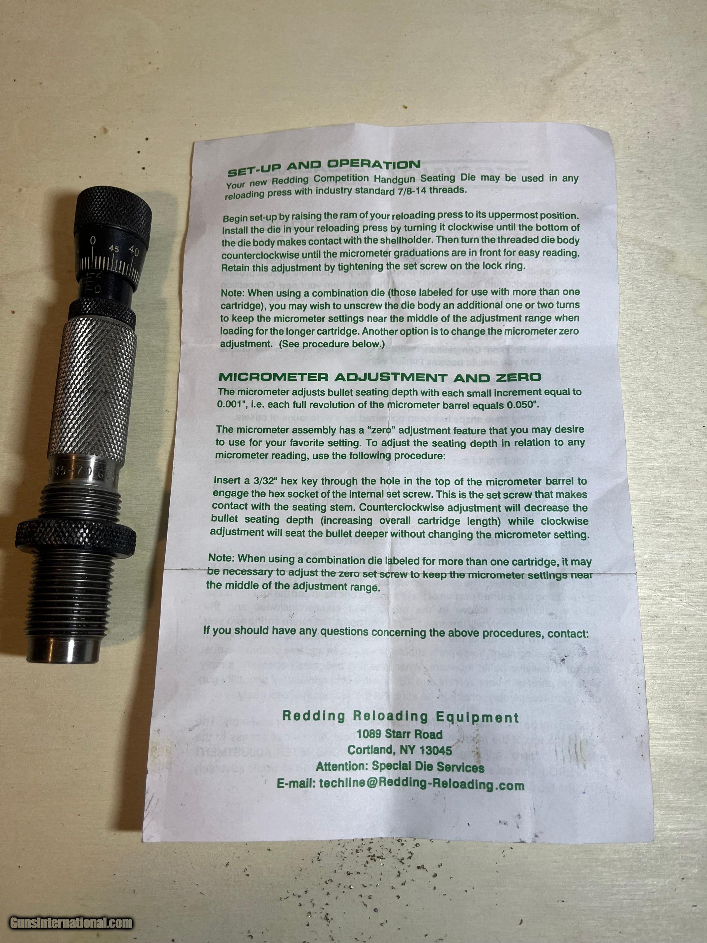 Description: Redding 45-70 competion micrometer seating die.Purchased new. Perfect condition. SOLD |