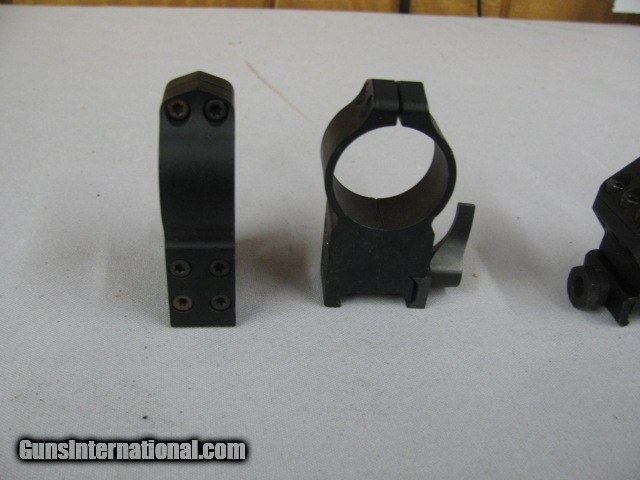 1 pair of 30mm, 2 pair of 30mm, 1 pair of inch rings, 1 ar base 1 scope Simons 4x20 compact-old-, 1 set of bases and rings Williams