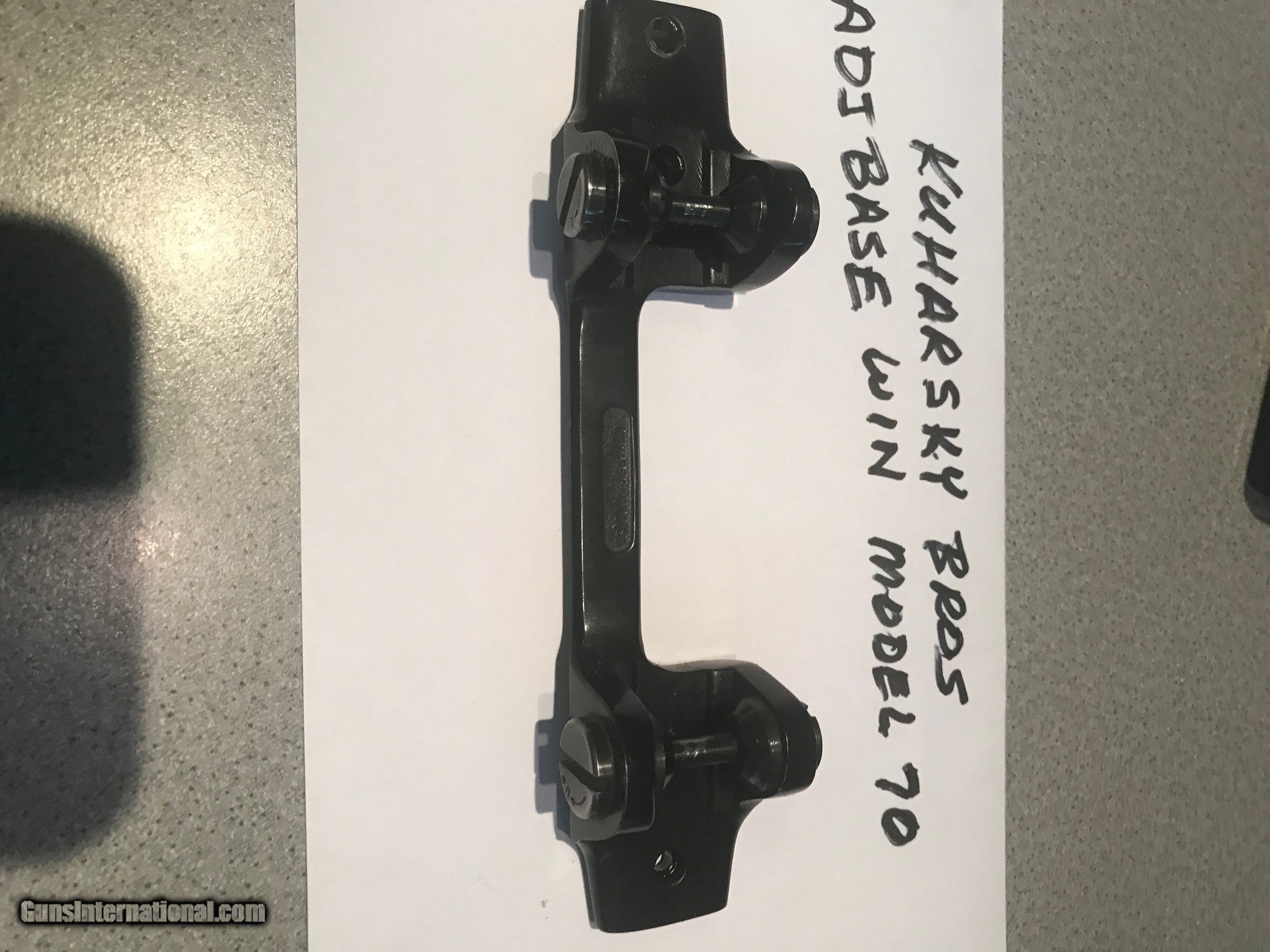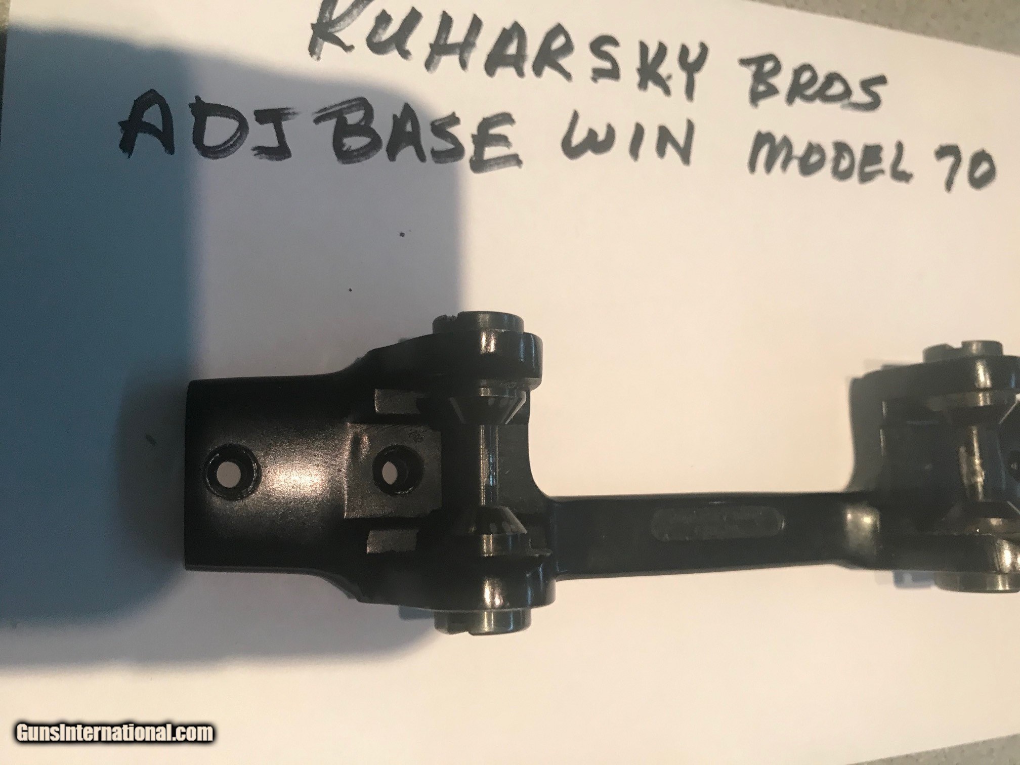 Description: Scope base mount, Kuharsky brand Adj. base Used, removed from Winchester model 70 Long action. Note; check other listings for Bausch & Lomb base and rings SOLD Rifle Caliber: .300 Winchester Magnum |