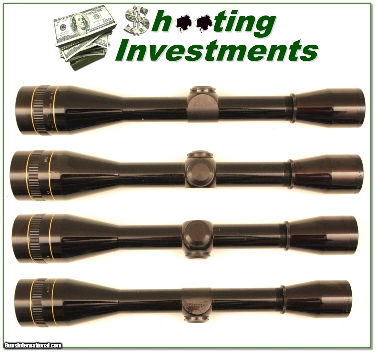 Description: This is an excellent condition hard to find Leupold 10X fixed power rifle scope. It is gloss finish with A0. It has crystal clear optics and fine Duplex crosshairs. Shipping is $9.95. Please email me with any questions or larger pictures. Please email me with any questions or larger pictures. (I now consign quality firearms only 10%! Let me know if you have any you would like to sell!) [15-0698s] Terms & Conditions Payment: Payment is by Money Order, Cashiers Check or Personal Check. I can now also accept MasterCard and Visa with a 3% convenience fee. PayPal can be used for some items but never firearms. Please let us know if you would like to pay via PayPal. Shipping: The shipping charge will be listed in each description. It is $30 for most guns. Some heavy guns or those insured for over $2000 may be higher. Shipments to Alaska and Hawaii are higher because air shipment is required. Most firearms are shipped within 5 days of receipt of payment. We prefer shipping at the beginning of the week to avoid firearms in transit over weekends. We package all shipments carefully and insure them for the full purchase price, rounded up to the next $100. In the unlikely event that damage occurs, it is important that you save all packaging material for the claims process. Optics are shipped Priority Mail and most other non-firearm shipments are shipped First Class. Returns: Our return policy is simple. If for any reason you are not pleased with your purchase, you may return your item for a refund. The only exception is ammunition, it cannot be returned. It is important to us that you are happy. Guns cannot be fired or dissembled before returning them and must be returned in the same condition as received. Notification of a return must occur with-in 3 days of receipt at your dealer. Shipping, convenience and dealer fees are not refundable and are the responsibility of the buyer. Lay-a-way: If needed, we offer a 60 day lay-a-way option on most firearms. It is 1/3 now, 1/3 in 30 days and 1/3 in 60 days. Lay-a-way firearm sales are final. Consigning your firearms with Shooting Investments: We will help you get top dollar for your firearms. While most local guns shops charge 20% or more, our fee is only 10% with a minimum of $50. At your local gun shop it might take months to sell. Selling on-line provides instant access to thousands of interested buyers. You won’t find any other on-line dealer willing to sell your firearms for only 10% or listing every gun on 4 separate s. Selling through an House typically costs 15% and you have to wait several months to sell and longer to receive funds. If properly priced, we will sell your firearms in a week or two. Send us an email or give us a call and we’ll explain how easy it is for you to get top dollar. Trading: We collect guns and usually just trade for guns we want to add to our collections. We often sell guns for others wanting to purchase one of ours. We find this the most fair to both of us. Our Commission is only 10% and we hold the gun you want until yours sells. Please contact us if you want to sell one of yours to buy one of ours. Help for California Buyers: We are happy to ship to California. It is the buyer’s responsibility to make sure any item you buy is legal in your state. We are also happy to help with your purchase of a firearm from someone other than us. If you see a gun you would like to buy but the seller can’t or won’t ship to California we can help. You buy the gun and have it shipped to us. We’ll then ship it to your California dealer. The cost for this service is only $30 + shipping. Let me know if we can help! SOLD |