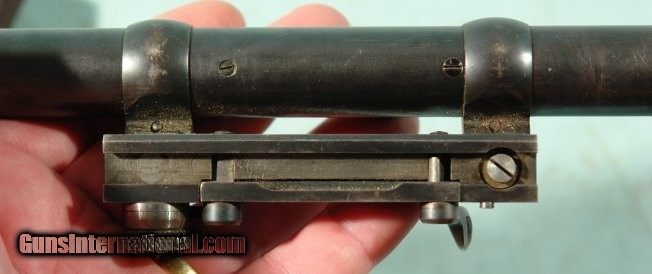 RARE GRIFFIN & HOWE WINDAGE MICROMETER SIDE MOUNT WITH ZIESS ZIELKLEIN 2 1/2 POWER SCOPE WITH THE ORIGINAL ZEISS LEATHER SCOPE CAPS CIRCA 1930’S.