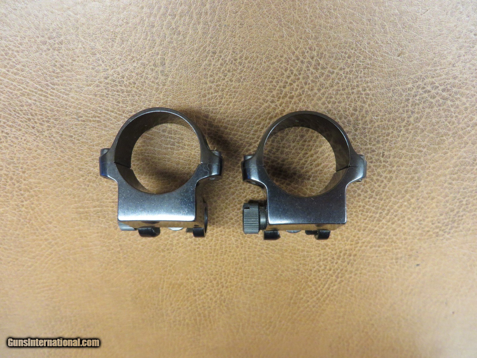 Description: Blued steel 1 inch rings. Both are offset extension style. Fits Number 1 and Number 3, 77/22, Mini 14 and 30 Ranch, Redhawk, and others. 99% condition. SOLD |