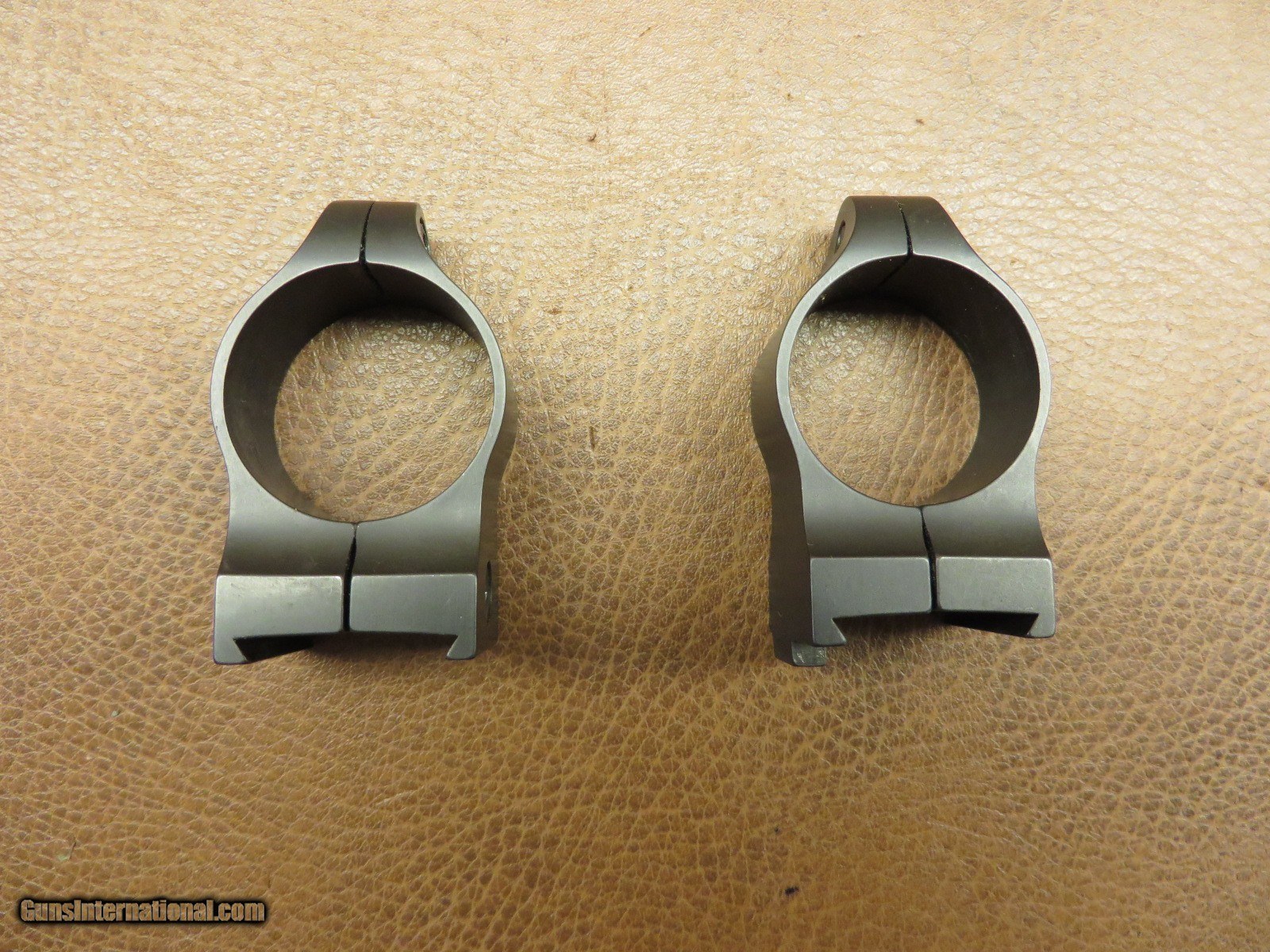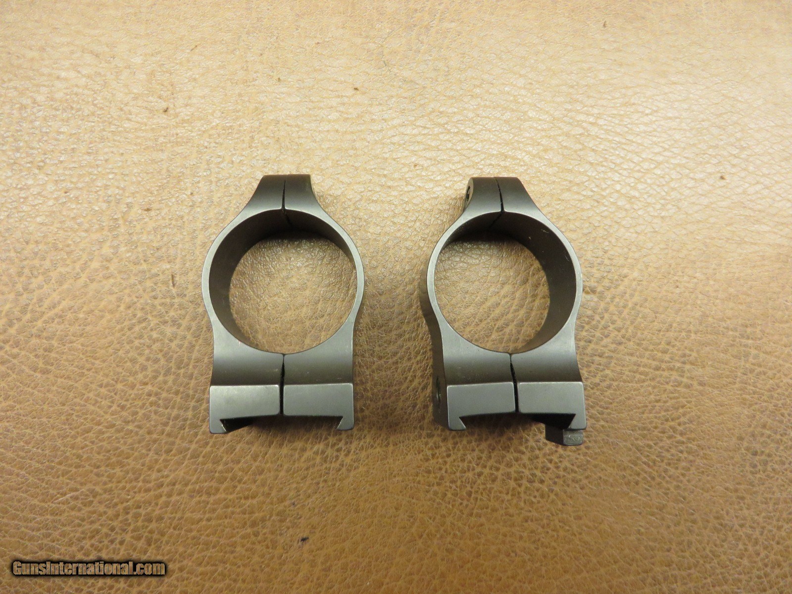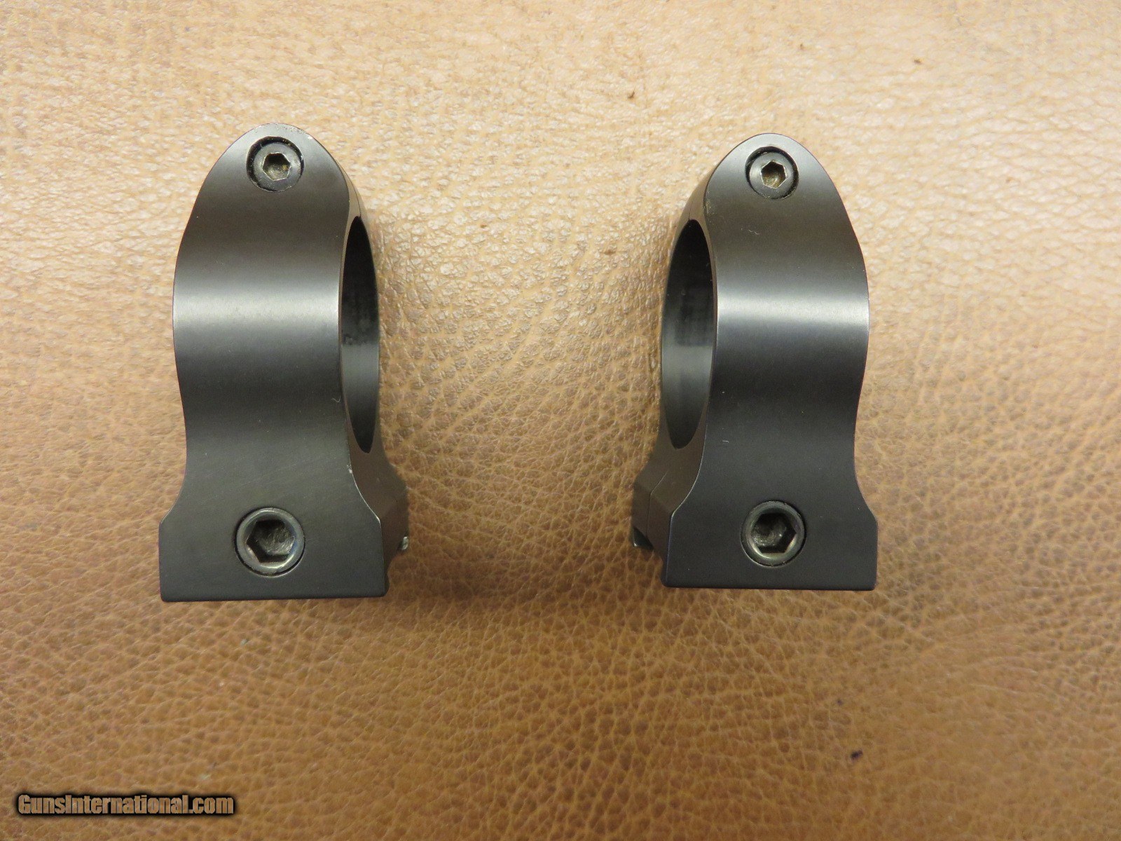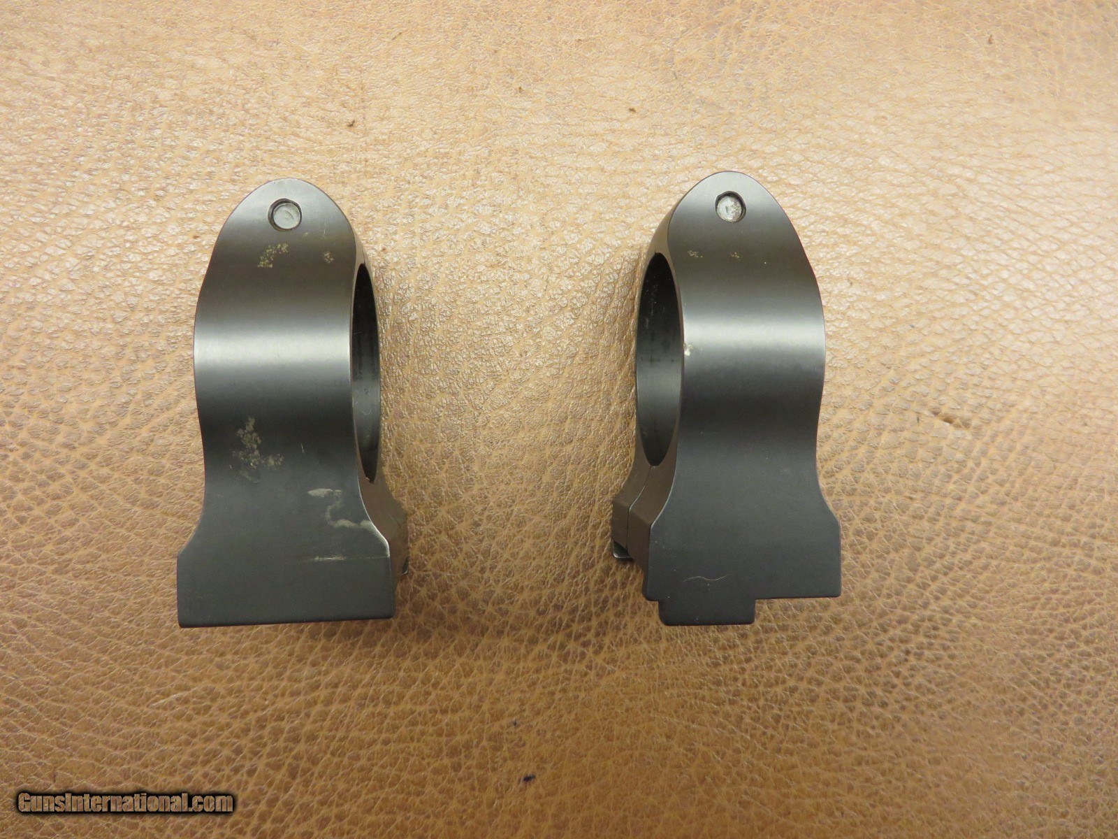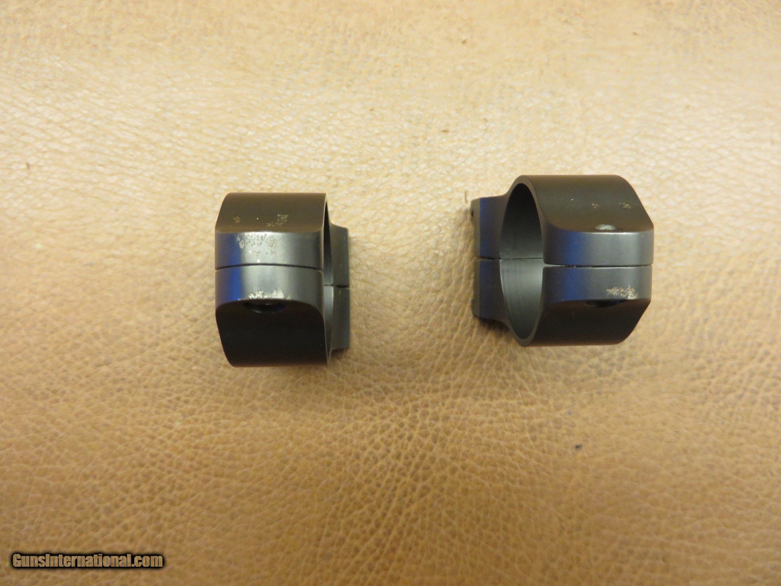 Description: Steel 1 inch rings for 19MM dovetailed receiver with cut out for recoil plate. Matte finish. One is excellent the other is about 90% finish. SOLD |