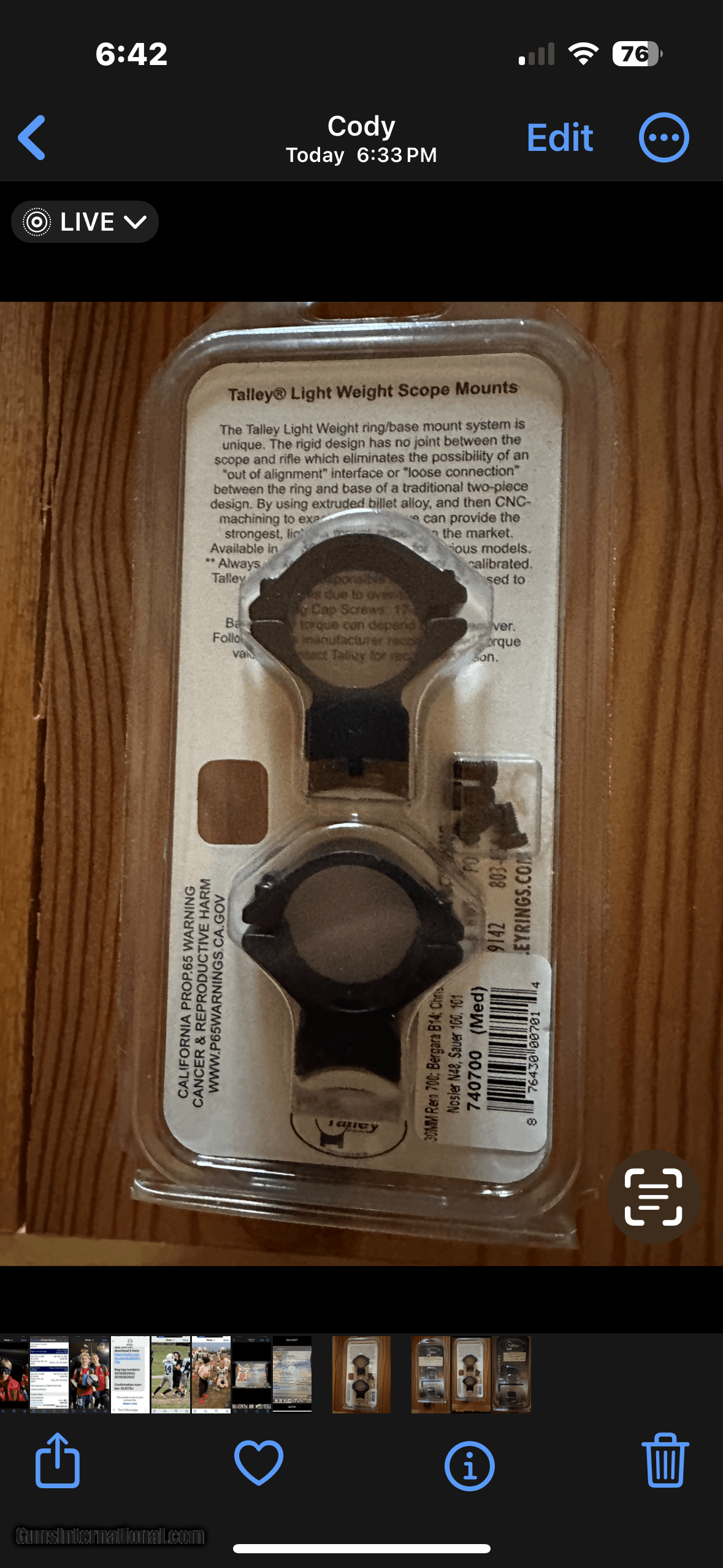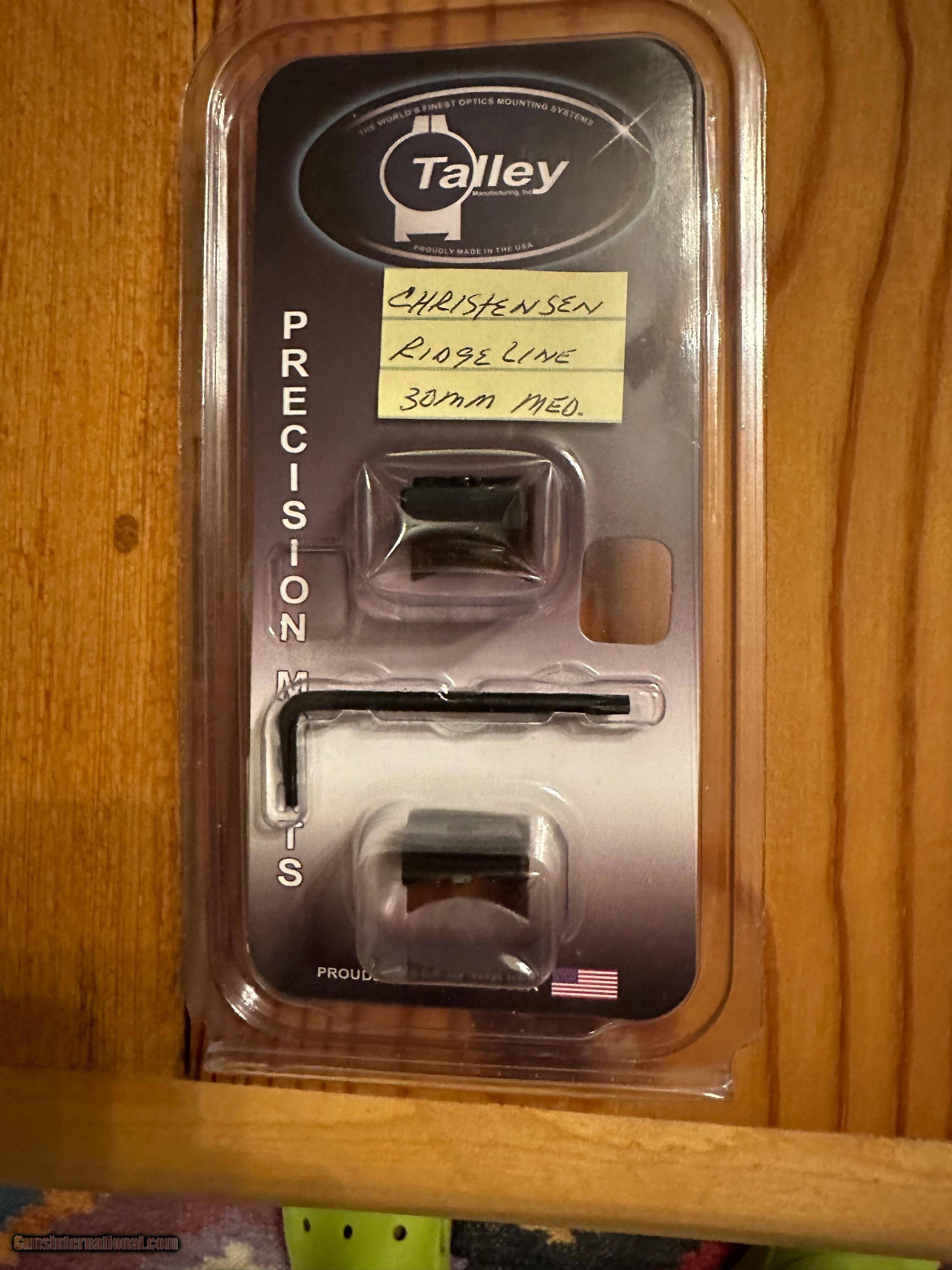Description: Talley Mounts for Christensen Ridge Line 30 mm medium sku number 740700.like new. Shipping $5.00 SOLD |