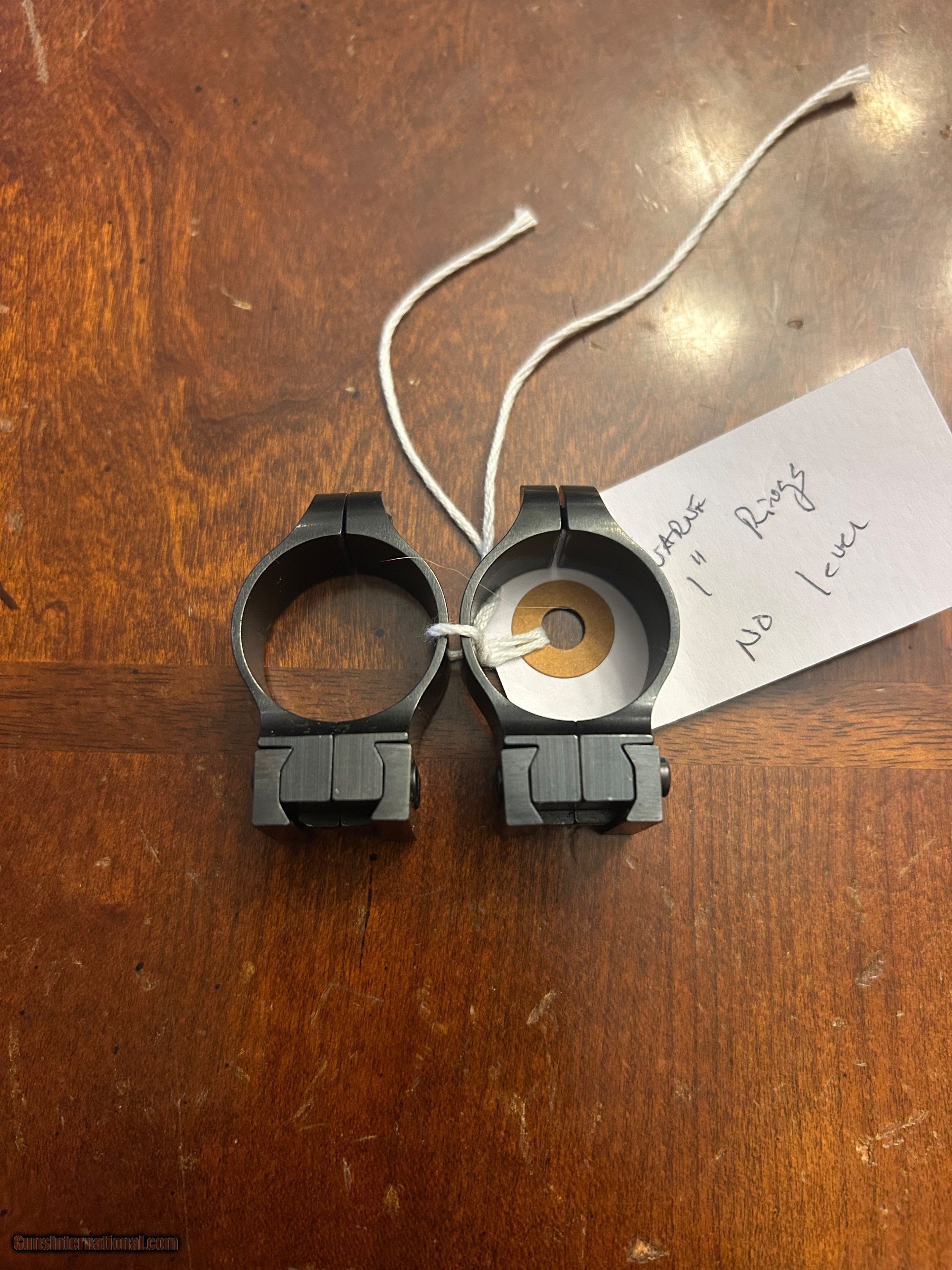 Description: 1" Warne rings that do not have the lever. This model does have the recoil lug to keep them from slipping. see pictures. Price includes shipping. Price: $45.00 Contact Seller |