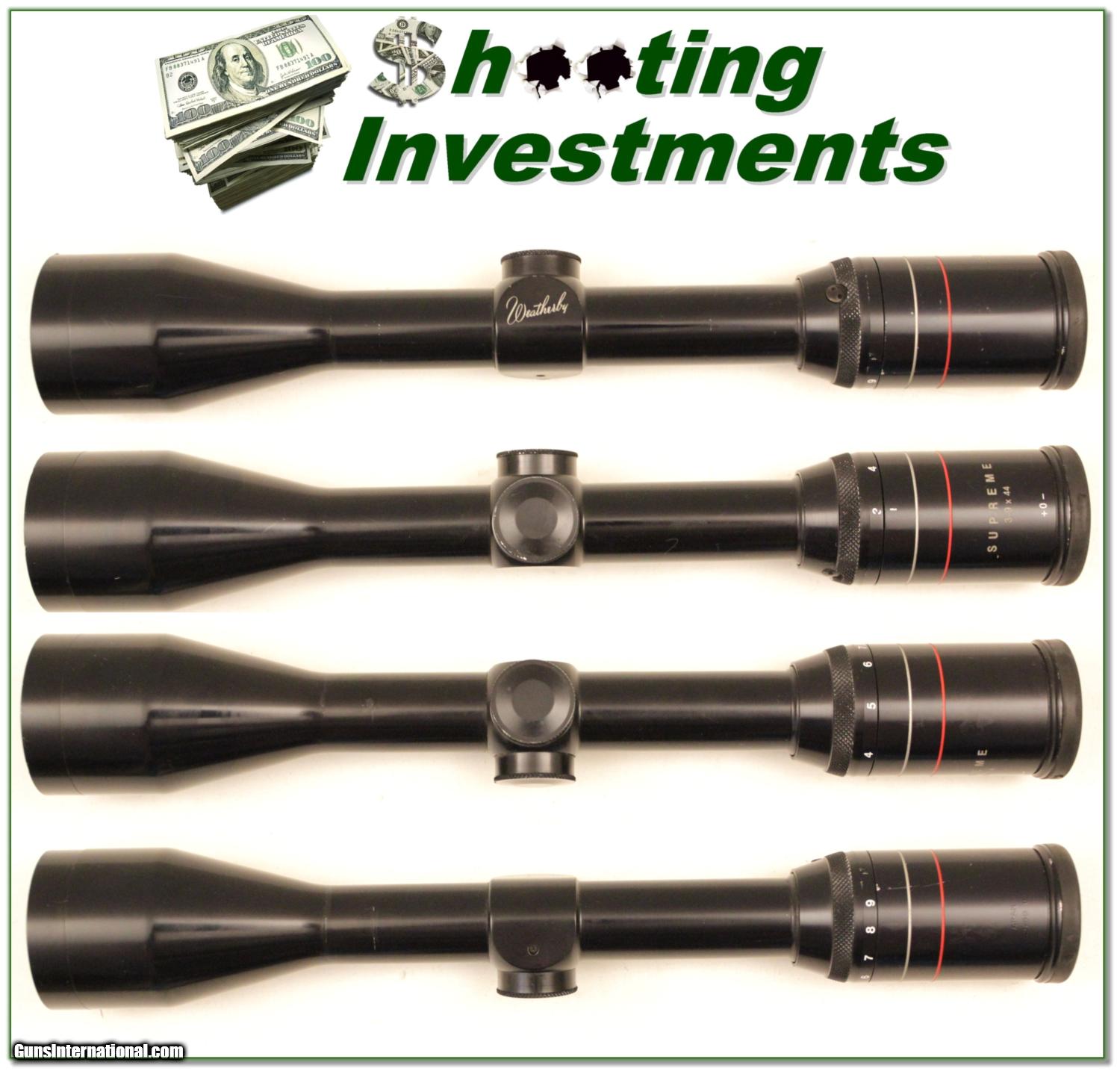 Description: This is a Weatherby Supreme 3-9 X 44mm rifle scope. These are high quality scopes. Other than some light ring marks that will be covered when mounted this one is in collector condition. It has crystal clear optics with duplex crosshairs. Shipping $9.95 and please email me with any questions or larger pictures. (I now consign quality firearms only 10%! Let me know if you have any you would like to sell!) [15-0453s] Terms & Conditions Payment: Payment is by Money Order, Cashiers Check or Personal Check. I can now also accept MasterCard and Visa with a 3% convenience fee. PayPal can be used for some items but never firearms. Please let us know if you would like to pay via PayPal. Shipping: The shipping charge will be listed in each description. It is $30 for most guns. Some heavy guns or those insured for over $2000 may be higher. Shipments to Alaska and Hawaii are higher because air shipment is required. Most firearms are shipped within 5 days of receipt of payment. We prefer shipping at the beginning of the week to avoid firearms in transit over weekends. We package all shipments carefully and insure them for the full purchase price, rounded up to the next $100. In the unlikely event that damage occurs, it is important that you save all packaging material for the claims process. Optics are shipped Priority Mail and most other non-firearm shipments are shipped First Class. Returns: Our return policy is simple. If for any reason you are not pleased with your purchase, you may return your item for a refund. The only exception is ammunition, it cannot be returned. It is important to us that you are happy. Guns cannot be fired or dissembled before returning them and must be returned in the same condition as received. Notification of a return must occur with-in 3 days of receipt at your dealer. Shipping, convenience and dealer fees are not refundable and are the responsibility of the buyer. Lay-a-way: If needed, we offer a 60 day lay-a-way option on most firearms. It is 1/3 now, 1/3 in 30 days and 1/3 in 60 days. Lay-a-way firearm sales are final. Consigning your firearms with Shooting Investments: We will help you get top dollar for your firearms. While most local guns shops charge 20% or more, our fee is only 10% with a minimum of $50. At your local gun shop it might take months to sell. Selling on-line provides instant access to thousands of interested buyers. You won’t find any other on-line dealer willing to sell your firearms for only 10% or listing every gun on 4 separate s. Selling through an House typically costs 15% and you have to wait several months to sell and longer to receive funds. If properly priced, we will sell your firearms in a week or two. Send us an email or give us a call and we’ll explain how easy it is for you to get top dollar. Trading: We collect guns and usually just trade for guns we want to add to our collections. We often sell guns for others wanting to purchase one of ours. We find this the most fair to both of us. Our Commission is only 10% and we hold the gun you want until yours sells. Please contact us if you want to sell one of yours to buy one of ours. Help for California Buyers: We are happy to ship to California. It is the buyer’s responsibility to make sure any item you buy is legal in your state. We are also happy to help with your purchase of a firearm from someone other than us. If you see a gun you would like to buy but the seller can’t or won’t ship to California we can help. You buy the gun and have it shipped to us. We’ll then ship it to your California dealer. The cost for this service is only $30 + shipping. Let me know if we can help! SOLD |